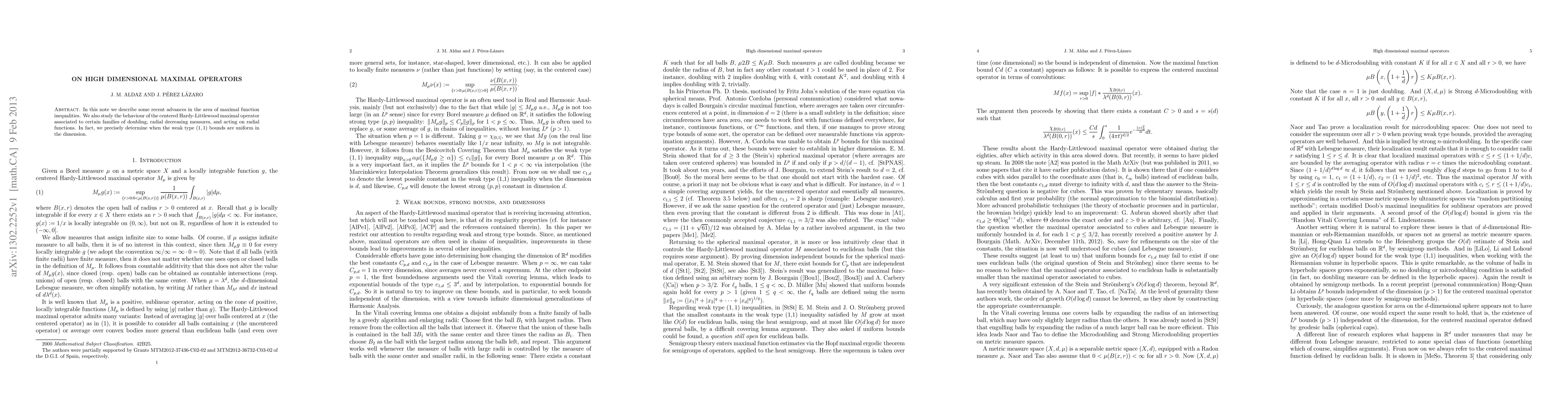 Summary: This paper discusses recent advancements in maximal function inequalities and analyzes the behavior of the centered Hardy-Littlewood maximal operator for specific doubling measures, determining uniform weak type $(1,1)$ bounds across dimensions.
