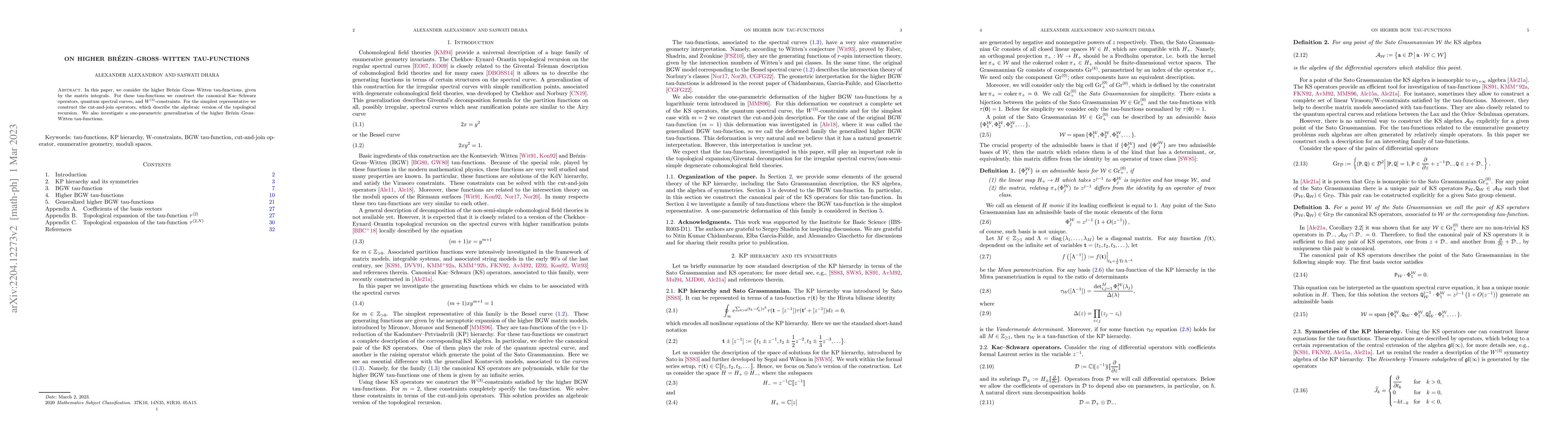 In this paper, we consider the higher Br\'ezin--Gross--Witten tau-functions, given by the matrix integrals. For these tau-functions we construct the canonical Kac--Schwarz operators, quantum spectral curves, and $W^{(3)}$-constraints. For the simplest representative we construct the cut-and-join operators, which describe the algebraic version of the topological recursion. We also investigate a one-parametric generalization of the higher Br\'ezin--Gross--Witten tau-functions.