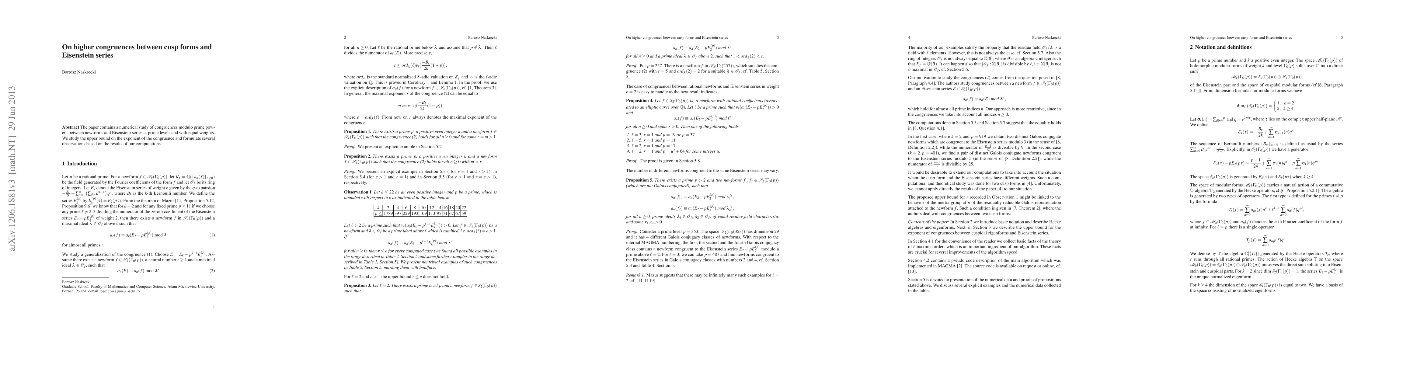 This paper explores congruences between cusp forms and Eisenstein series at prime powers, proposing a conjecture about the properties of these primes and their weights, and verifying the conjecture through numerical examples.