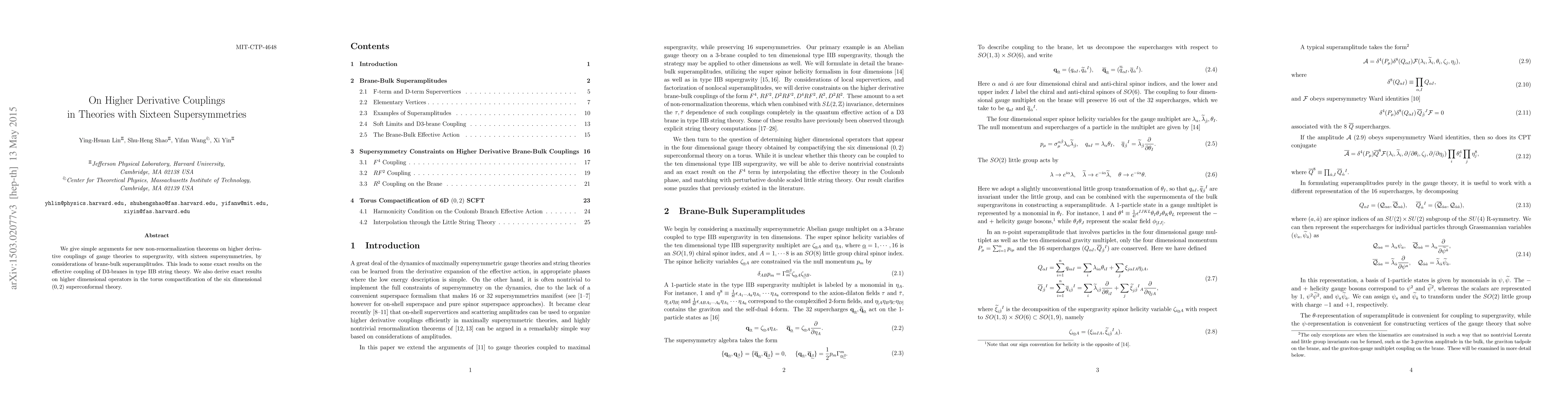 This paper establishes new non-renormalization theorems for higher derivative couplings in theories with sixteen supersymmetries using brane-bulk superamplitudes, providing exact results on D3-branes in type IIB string theory and higher dimensional operators in six-dimensional (0, 2) superconformal theory.