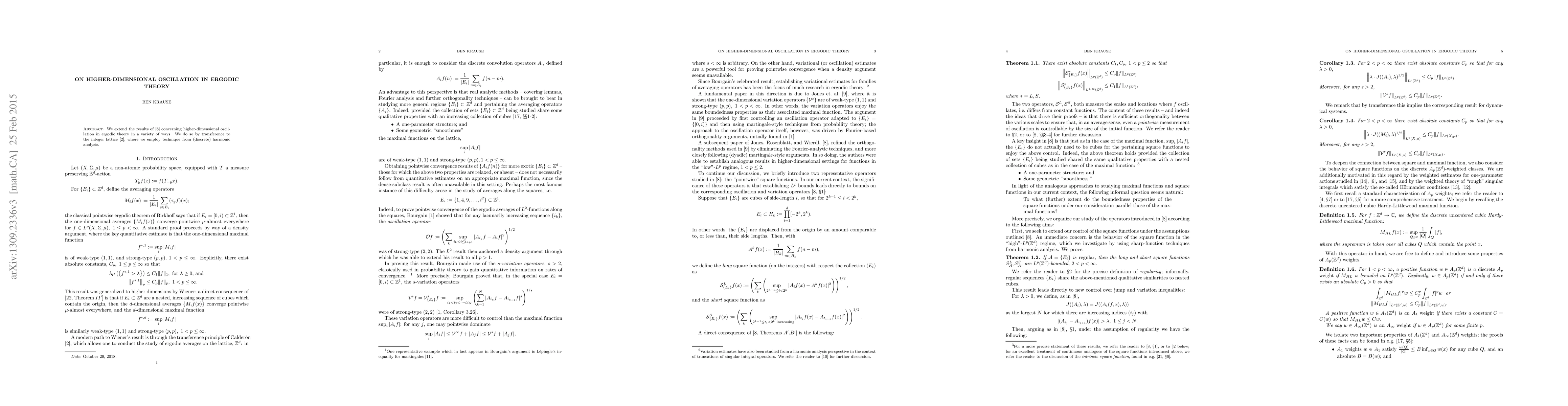 Researchers extend previous work on higher-dimensional oscillation in ergodic theory to the integer lattice using techniques from discrete harmonic analysis, making new findings and implications in this field.