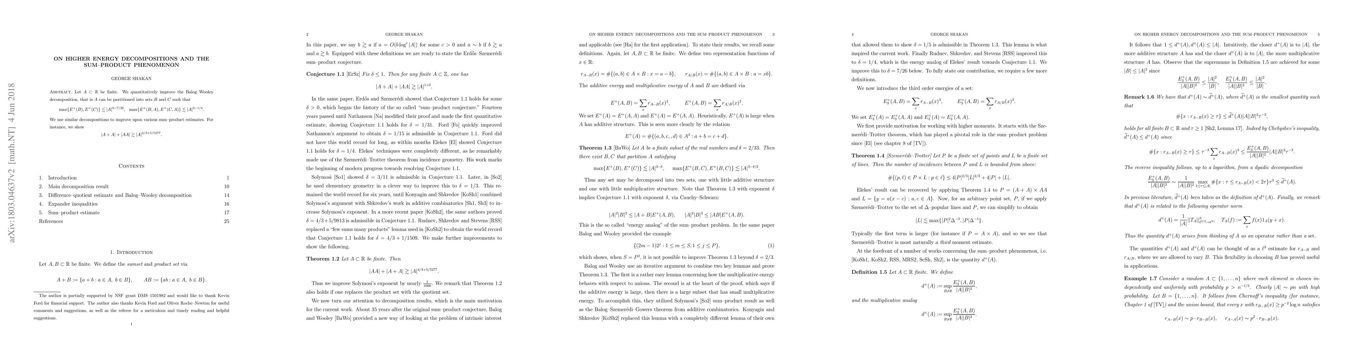 Researchers improved a mathematical decomposition technique to better estimate energy costs for sets of real numbers, leading to faster calculations in sum-product estimates.