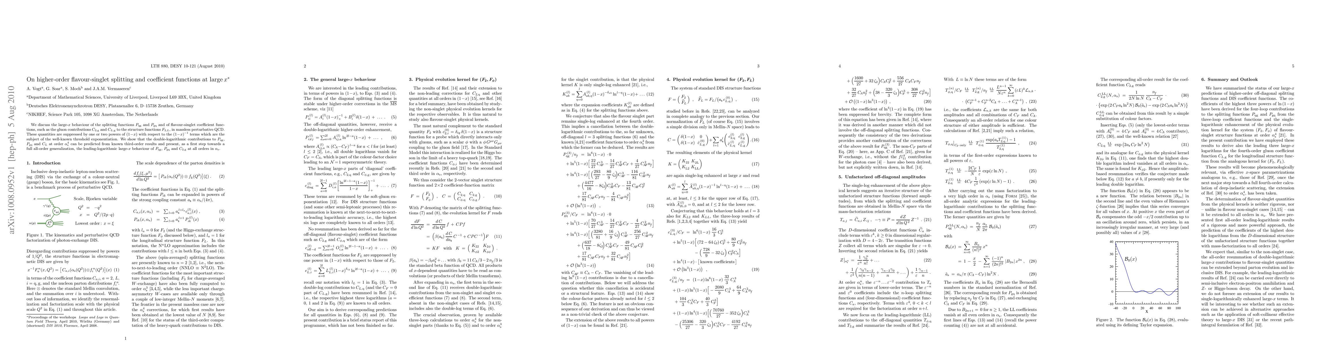 This research paper examines the large-x behavior of splitting functions P_qg and P_gq, and flavour-singlet coefficient functions in massless perturbative QCD. It predicts double-logarithmic contributions to P_qg, P_gq, and C_L at order alpha_s^4 using known third-order results. The study also presents the leading-logarithmic large-x behavior of P_qg, P_gq, and C_2,g at all orders in alpha_s as a step towards an all-order generalization.