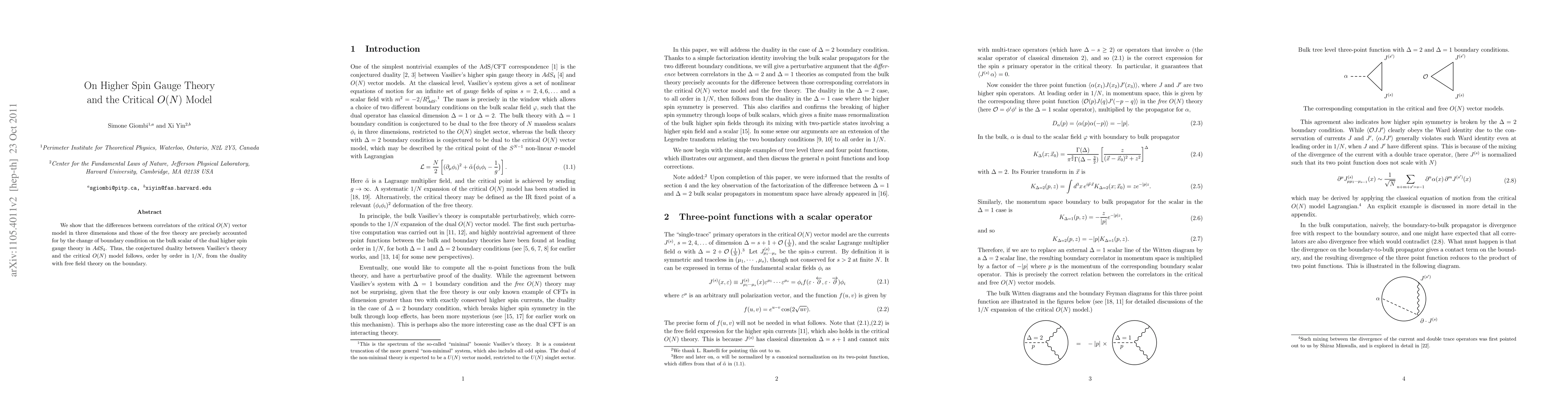 This paper establishes that the differences in correlators between the critical O(N) vector model in three dimensions and the free theory are explained by boundary conditions in dual higher spin gauge theory in AdS4, confirming the conjectured duality between Vasiliev's theory and the critical O(N) model.