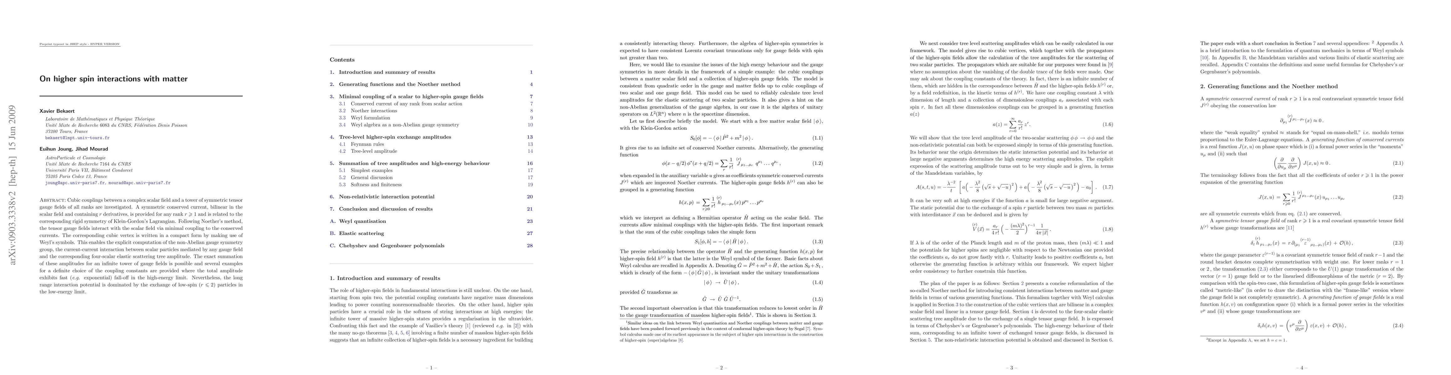 Cubic couplings between a complex scalar field and a tower of symmetric tensor gauge fields of all ranks are investigated. A symmetric conserved current, bilinear in the scalar field and containing r derivatives, is provided for any rank r>0 and is related to the corresponding rigid symmetry of Klein-Gordon's Lagrangian. Following Noether's method, the tensor gauge fields interact with the scalar field via minimal coupling to the conserved currents. The corresponding cubic vertex is written in a compact form by making use of Weyl's symbols. This enables the explicit computation of the non-Abelian gauge symmetry group, the current-current interaction between scalar particles mediated by any gauge field and the corresponding four-scalar elastic scattering tree amplitude. The exact summation of these amplitudes for an infinite tower of gauge fields is possible and several examples for a definite choice of the coupling constants are provided where the total amplitude exhibits fast (e.g. exponential) fall-off in the high-energy limit. Nevertheless, the long range interaction potential is dominated by the exchange of low-spin particles in the low-energy limit.