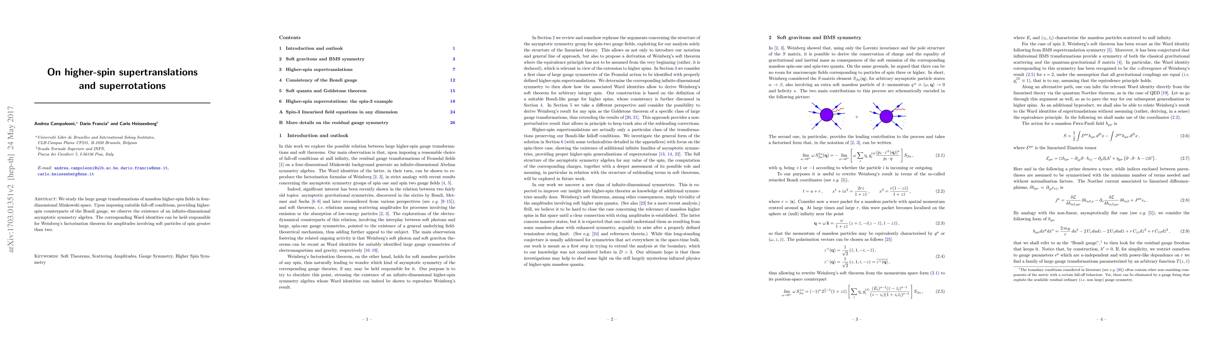 We study the large gauge transformations of massless higher-spin fields in four-dimensional Minkowski space. Upon imposing suitable fall-off conditions, providing higher-spin counterparts of the Bondi gauge, we observe the existence of an infinite-dimensional asymptotic symmetry algebra. The corresponding Ward identities can be held responsible for Weinberg's factorization theorem for amplitudes involving soft particles of spin greater than two.