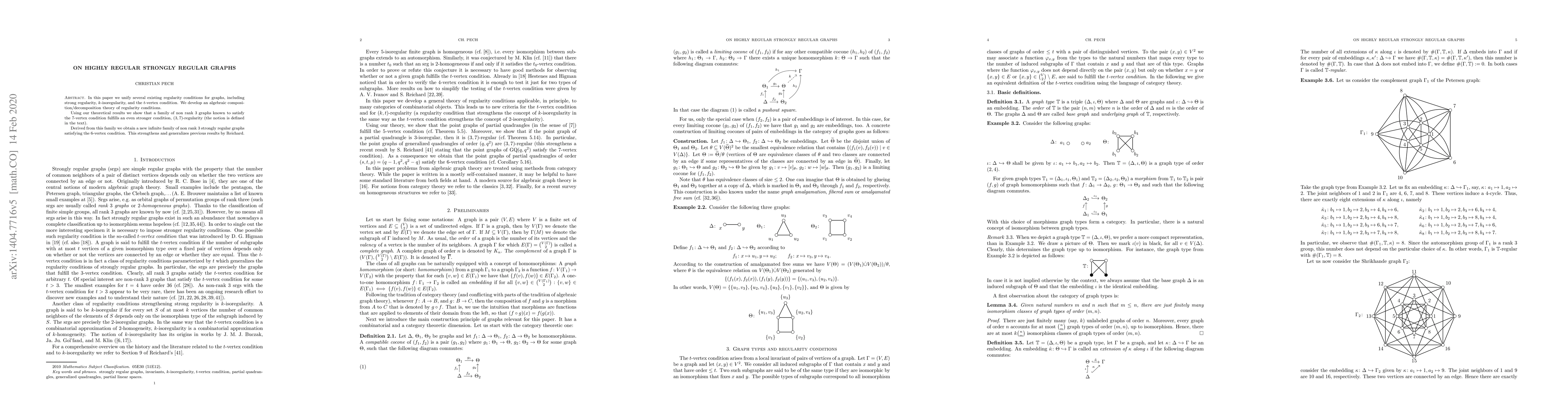 In this paper we unify several existing regularity conditions for graphs, including strong regularity, $k$-isoregularity, and the $t$-vertex condition. We develop an algebraic composition/decomposition theory of regularity conditions. Using our theoretical results we show that a family of non rank 3 graphs known to satisfy the $7$-vertex condition fulfills an even stronger condition, $(3,7)$-regularity (the notion is defined in the text). Derived from this family we obtain a new infinite family of non rank $3$ strongly regular graphs satisfying the $6$-vertex condition. This strengthens and generalizes previous results by Reichard.