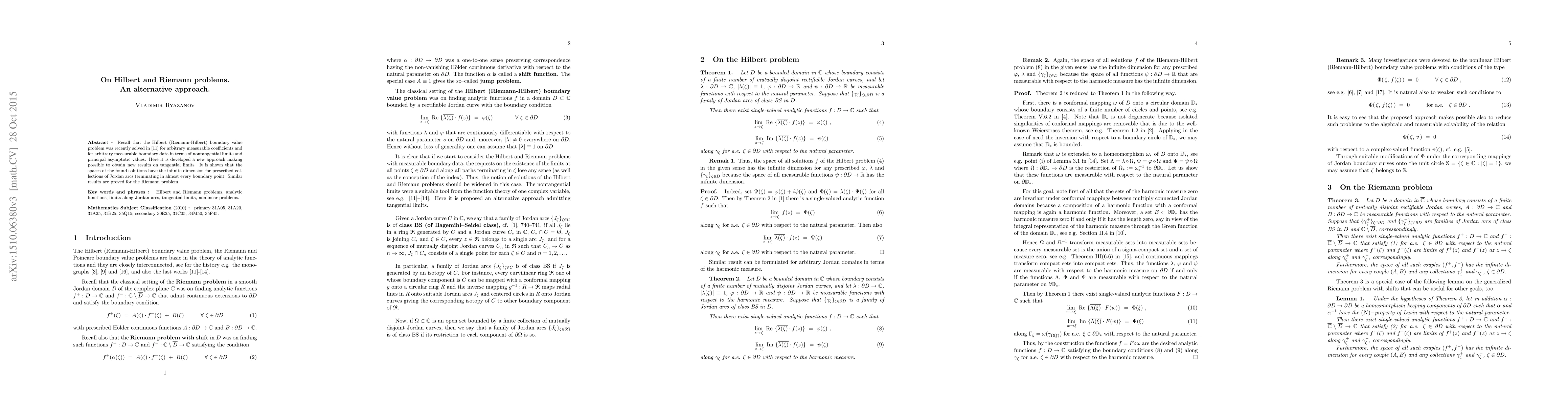 Recall that the Hilbert (Riemann-Hilbert) boundary value problem was recently solved in \cite{R1} for arbitrary measurable coefficients and for arbitrary measurable boundary data in terms of nontangential limits and principal asymptotic values. Here it is developed a new approach making possible to obtain new results on tangential limits. It is shown that the spaces of the found solutions have the infinite dimension for prescribed collections of Jordan arcs terminating in almost every boundary point. Similar results are proved for the Riemann problem.