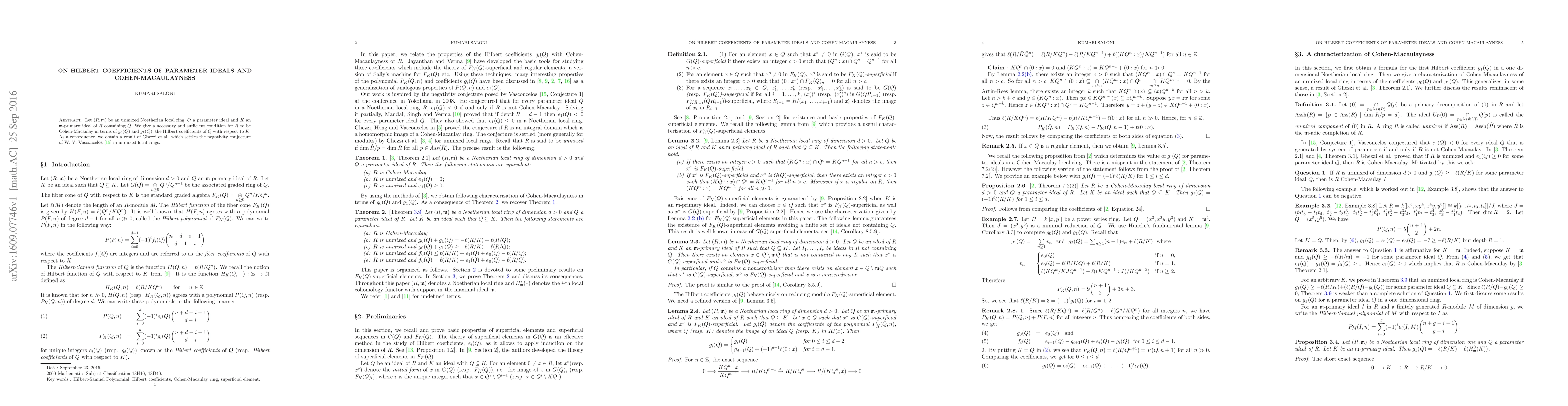 A paper establishes a necessary and sufficient condition for an unmixed local ring to be Cohen-Macaulay in terms of its Hilbert coefficients.