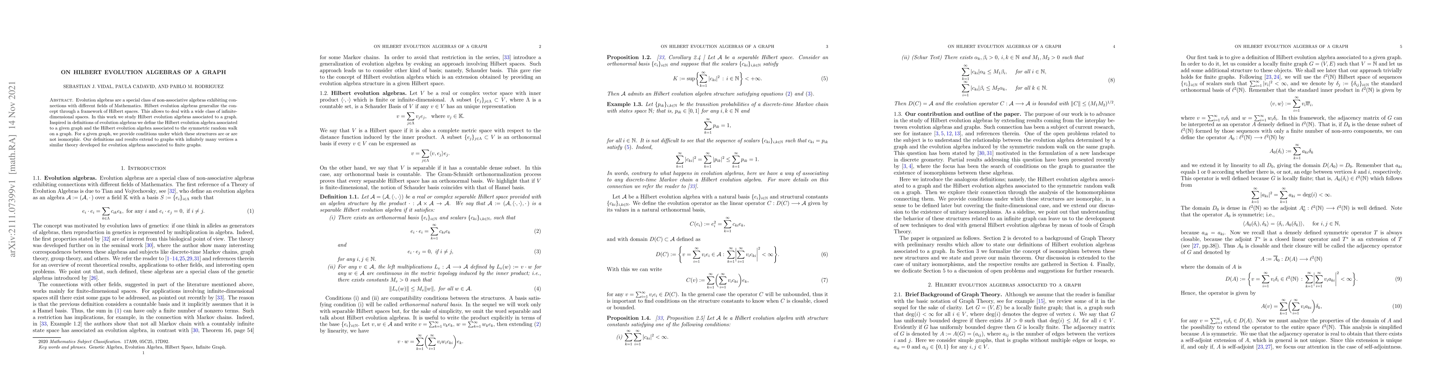 This paper studies Hilbert evolution algebras associated with graphs, extending the concept to infinite-dimensional spaces, and provides conditions for isomorphism between these structures.
