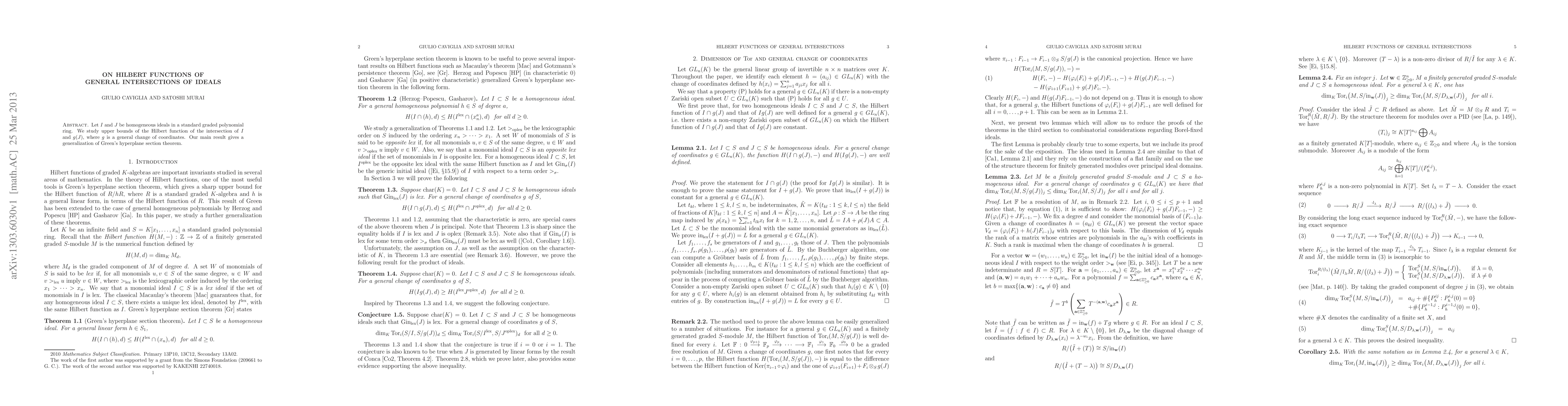 Let I and J be homogeneous ideals in a standard graded polynomial ring. We study upper bounds of the Hilbert function of the intersection of I and g(J), where g is a general change of coordinates. Our main result gives a generalization of Green's hyperplane section theorem.