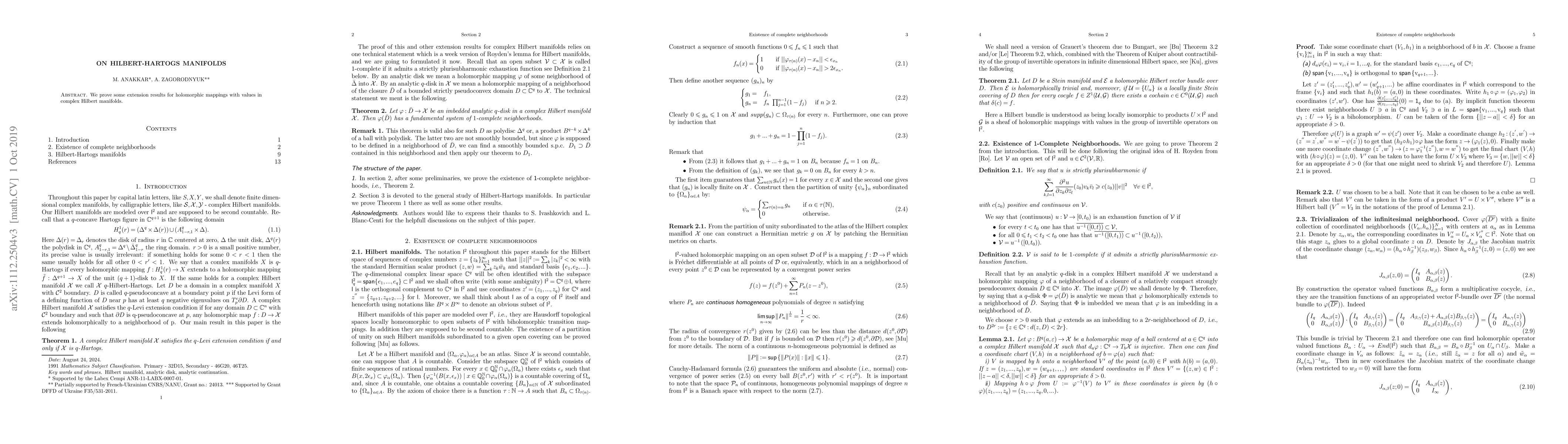 Summary: This paper establishes extension results for holomorphic mappings into complex Hilbert manifolds, enhancing the understanding of their properties and behavior. The findings contribute to the broader field of complex geometry and manifold theory.