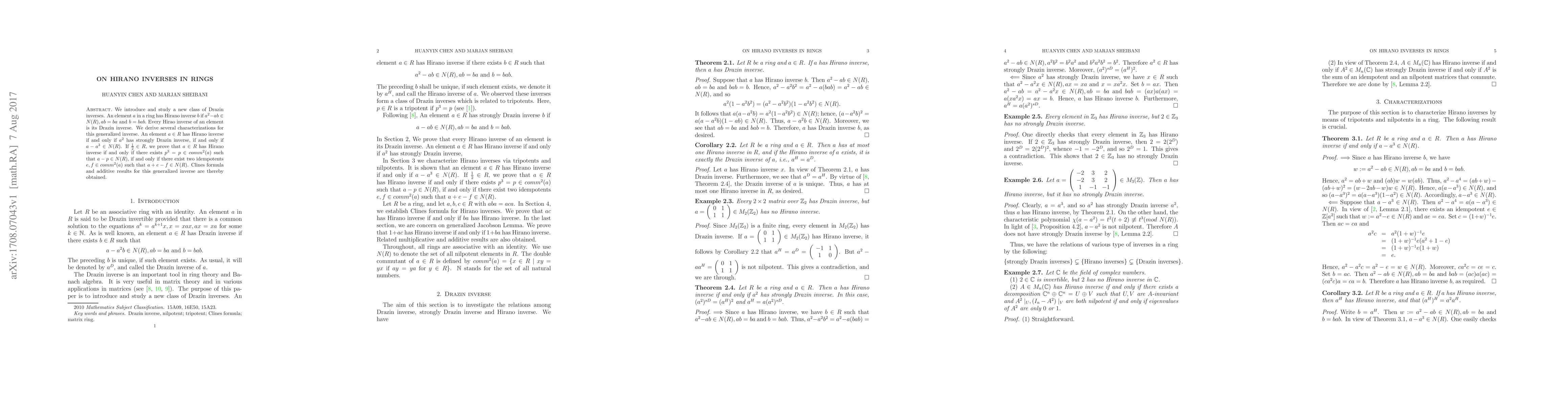 This paper introduces a new class of Drazin inverses called Hirano inverses in rings, showing that every Hirano inverse is a Drazin inverse, and provides several characterizations for this generalized inverse.
