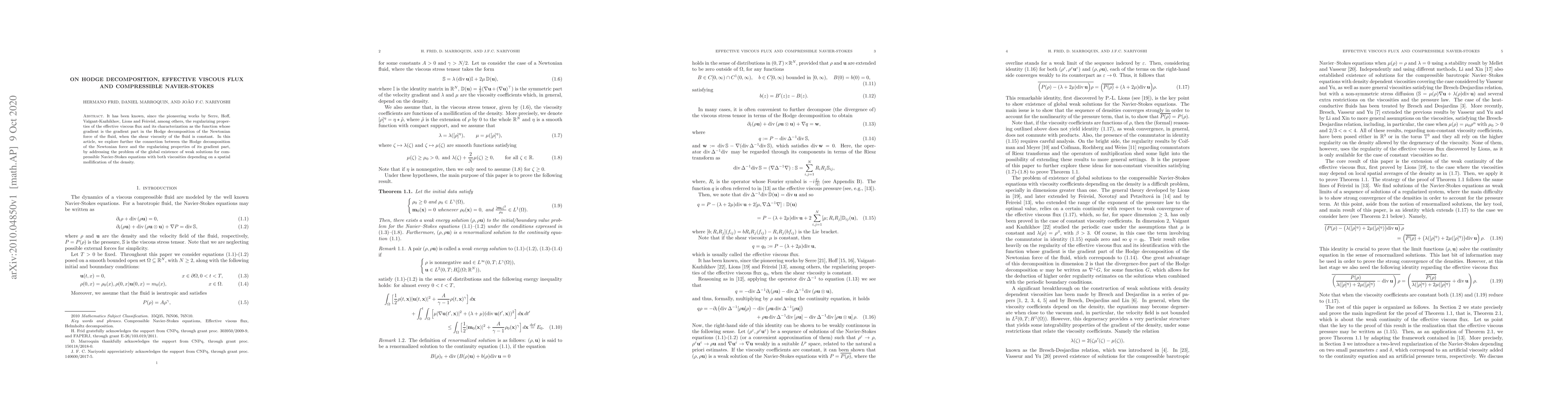It has been known, since the pioneering works by Serre, Hoff, Va\u{i}gant-Kazhikhov, Lions and Feireisl, among others, the regularizing properties of the effective viscous flux and its characterization as the function whose gradient is the gradient part in the Hodge decomposition of the Newtonian force of the fluid, when the shear viscosity of the fluid is constant. In this article, we explore further the connection between the Hodge decomposition of the Newtonian force and the regularizing properties of its gradient part, by addressing the problem of the global existence of weak solutions for compressible Navier-Stokes equations with both viscosities depending on a spatial mollification of the density.