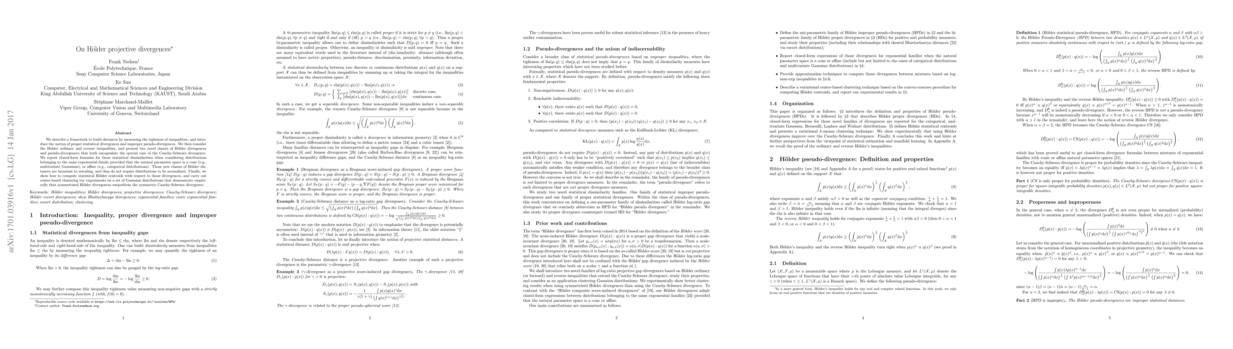 We describe a framework to build distances by measuring the tightness of inequalities, and introduce the notion of proper statistical divergences and improper pseudo-divergences. We then consider the H\"older ordinary and reverse inequalities, and present two novel classes of H\"older divergences and pseudo-divergences that both encapsulate the special case of the Cauchy-Schwarz divergence. We report closed-form formulas for those statistical dissimilarities when considering distributions belonging to the same exponential family provided that the natural parameter space is a cone (e.g., multivariate Gaussians), or affine (e.g., categorical distributions). Those new classes of H\"older distances are invariant to rescaling, and thus do not require distributions to be normalized. Finally, we show how to compute statistical H\"older centroids with respect to those divergences, and carry out center-based clustering toy experiments on a set of Gaussian distributions that demonstrate empirically that symmetrized H\"older divergences outperform the symmetric Cauchy-Schwarz divergence.