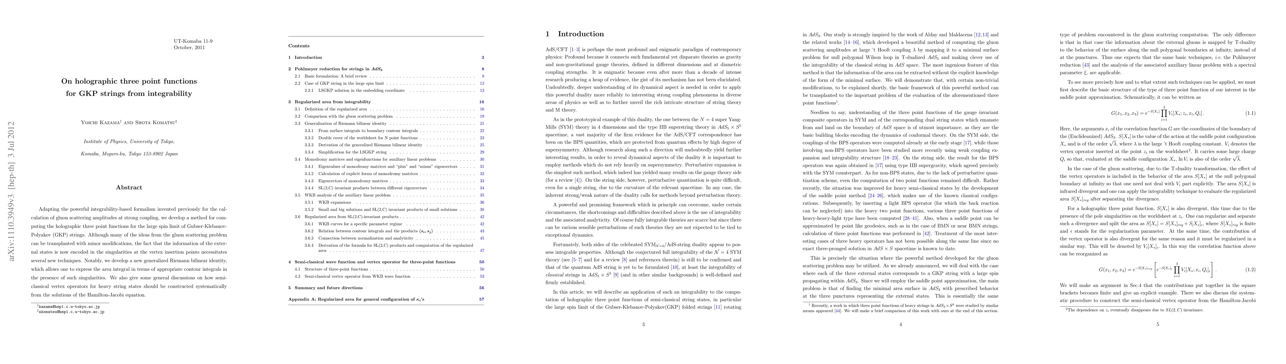This paper develops a method for computing holographic three point functions for large spin GKP strings using integrability techniques, introducing a new generalized Riemann bilinear identity to handle singularities at vertex insertion points and discussing the construction of semiclassical vertex operators from Hamilton-Jacobi solutions.
