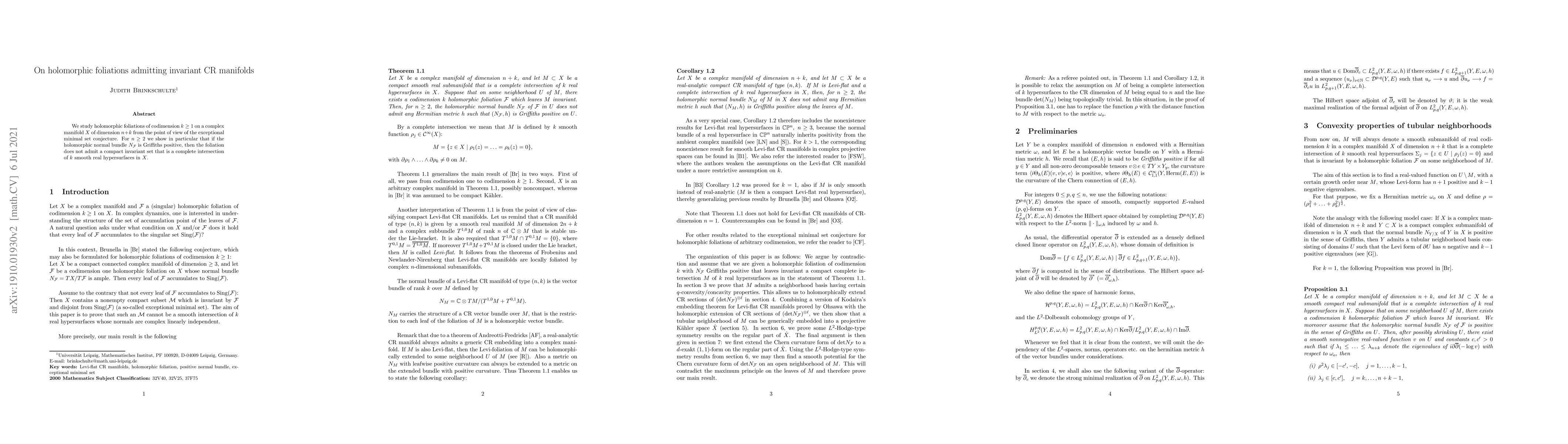 This research explores properties of certain complex geometric structures called holomorphic foliations and shows that, under specific conditions, these structures cannot contain particular types of compact invariant sets. The findings have implications for understanding the behavior of these mathematical objects in complex geometry.