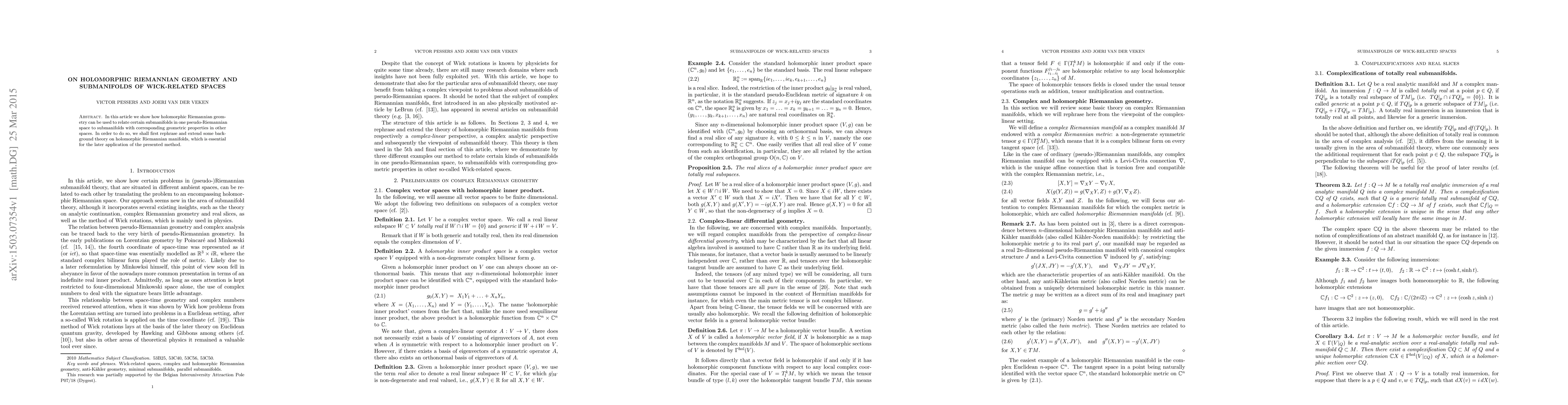 In this article we show how holomorphic Riemannian geometry can be used to relate certain submanifolds in one pseudo-Riemannian space to submanifolds with corresponding geometric properties in other spaces. In order to do so, we shall first rephrase and extend some background theory on holomorphic Riemannian manifolds, which is essential for the later application of the presented method.