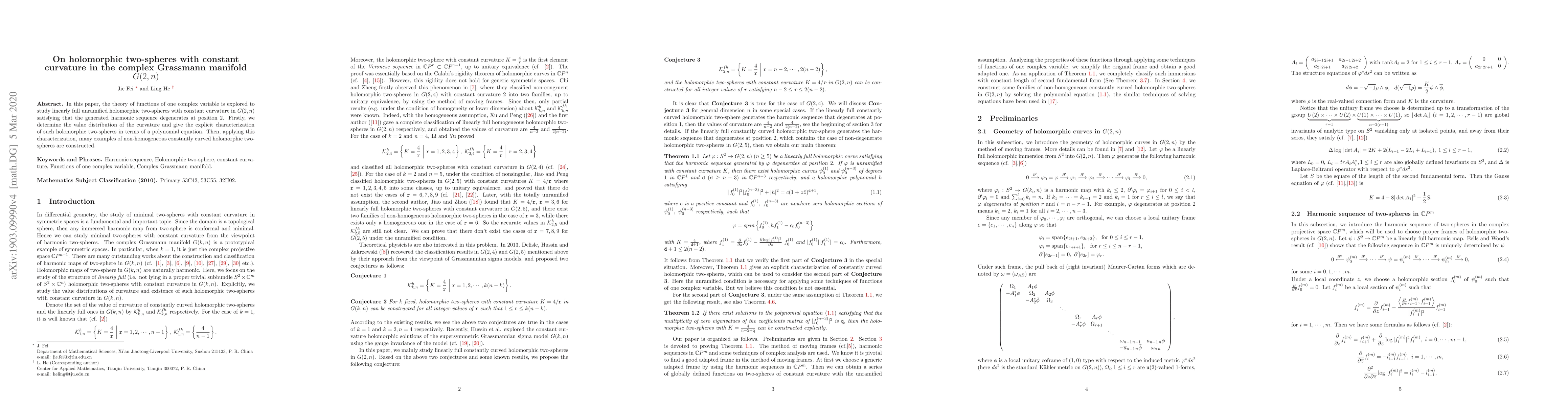 In this paper, the theory of functions of one complex variable is explored to study linearly full unramified holomorphic two-spheres with constant curvature in $G(2,n)$ satisfying that the generated harmonic sequence degenerates at position $2$. Firstly, we determine the value distribution of the curvature and give the explicit characterization of such holomorphic two-spheres in terms of a polynomial equation. Then, applying this characterization, many examples of non-homogeneous constantly curved holomorphic two-spheres are constructed.