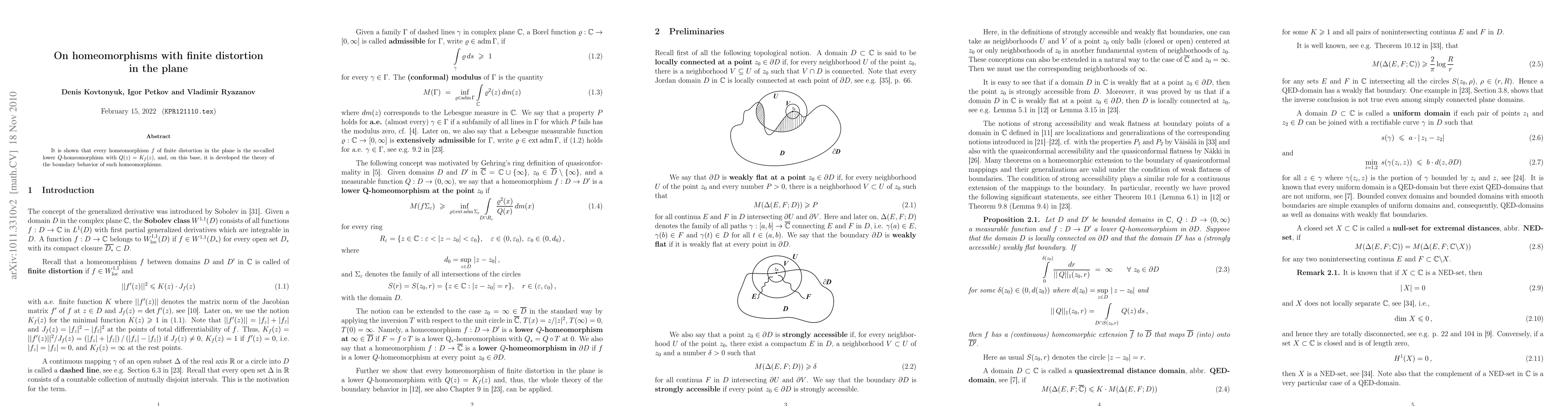 This paper demonstrates that any homeomorphism of finite distortion in the plane is a lower Q-homeomorphism with Q(z) equal to the distortion function K_f(z), and it further explores the boundary behavior theory of such homeomorphisms.