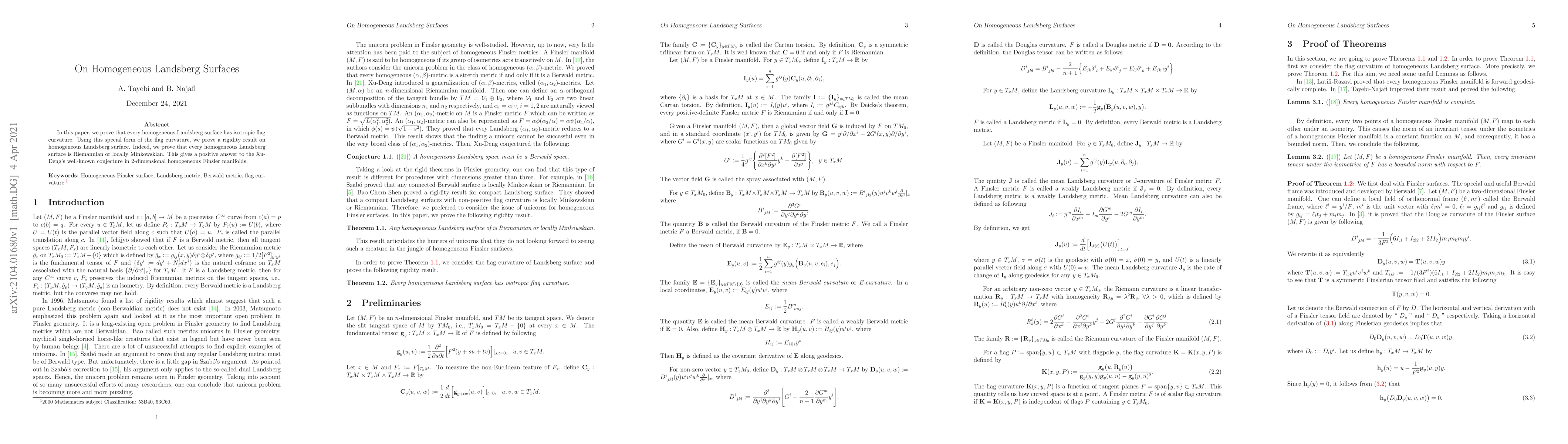 In this paper, we prove that every homogeneous Landsberg surface has isotropic flag curvature. Using this special form of the flag curvature, we prove a rigidity result on homogeneous Landsberg surface. Indeed, we prove that every homogeneous Landsberg surface is Riemannian or locally Minkowskian. This gives a positive answer to the Xu-Deng's well-known conjecture in 2-dimensional homogeneous Finsler manifolds.