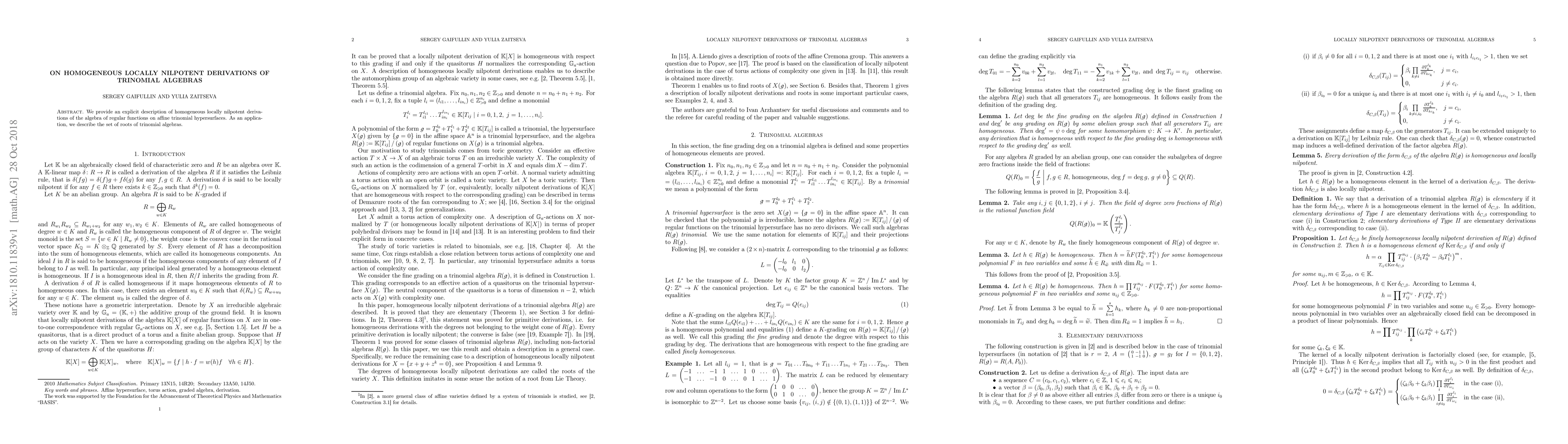 The research uses a combination of algebraic geometry and combinatorial methods to study the properties of locally nilpotent derivations on trinomial algebras.