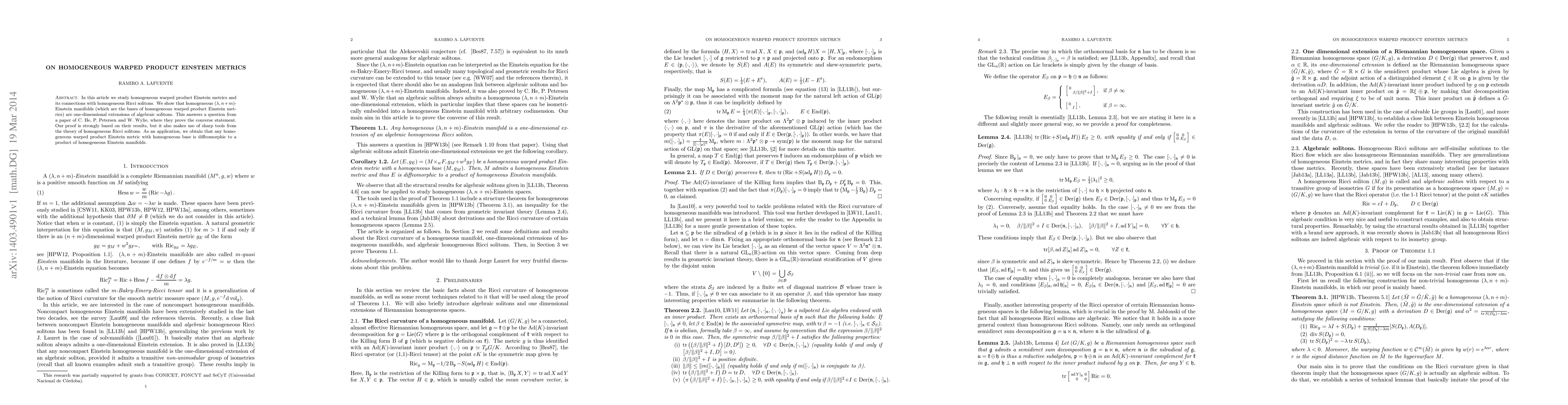 This paper explores homogeneous warped product Einstein metrics and their links to homogeneous Ricci solitons, proving that $(\lambda,n+m)$-Einstein manifolds are one-dimensional extensions of algebraic solitons, and demonstrates that such metrics are diffeomorphic to products of homogeneous Einstein manifolds.