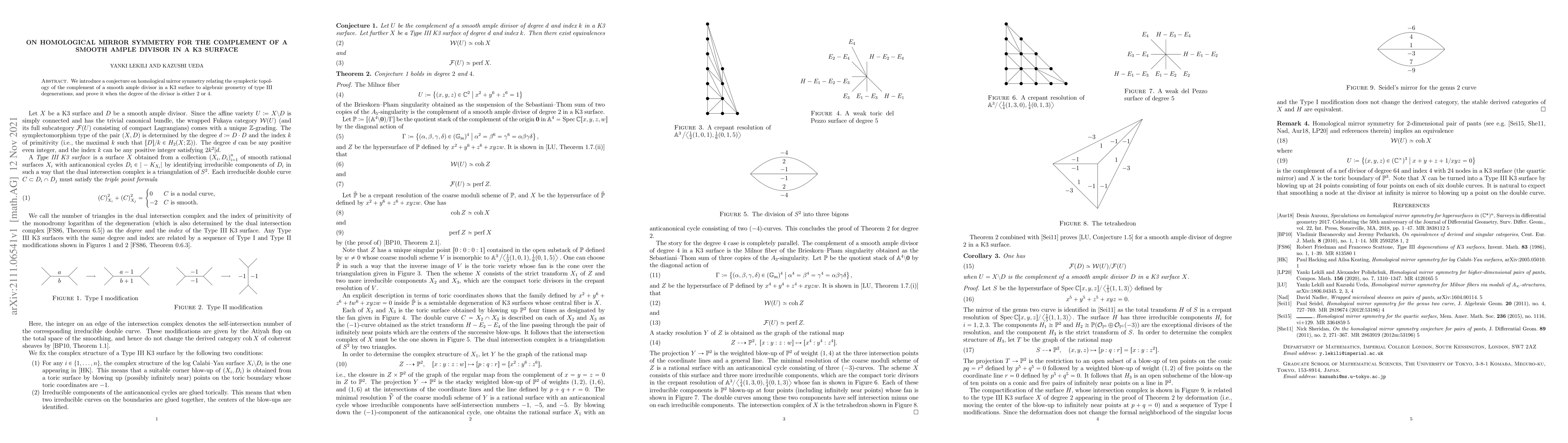 We introduce a conjecture on homological mirror symmetry relating the symplectic topology of the complement of a smooth ample divisor in a K3 surface to algebraic geometry of type III degenerations, and prove it when the degree of the divisor is either 2 or 4.