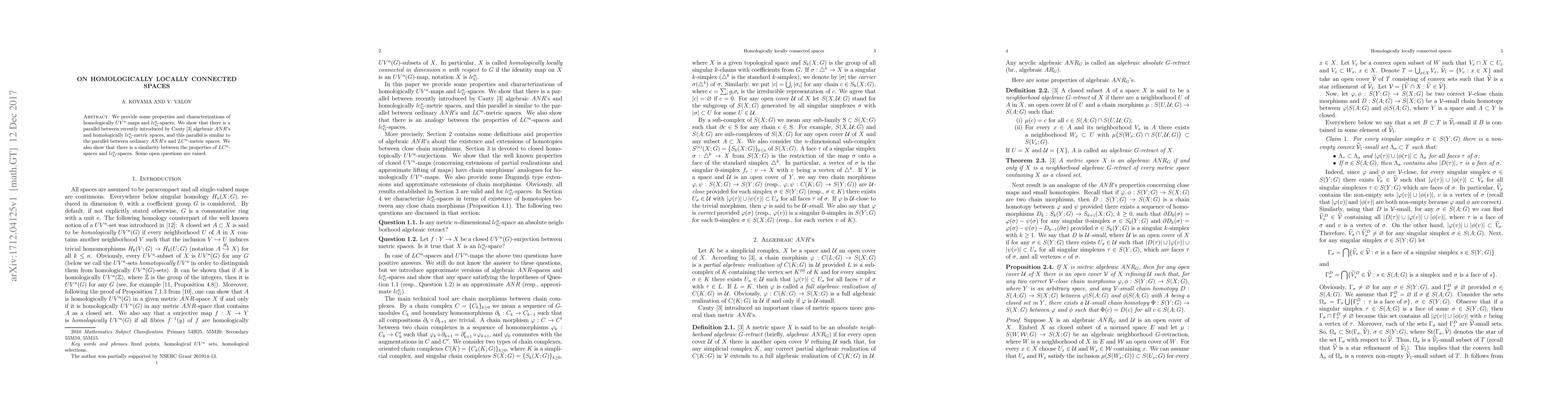 The paper explores properties and characterizations of homologically locally connected spaces, drawing parallels between algebraic ANR's and homologically UV^n-maps metric spaces, similar to the relationship between ordinary ANR's and LC^n-metric spaces. It also highlights similarities between LC^n-spaces and lc^n_G-spaces, while posing some open questions.