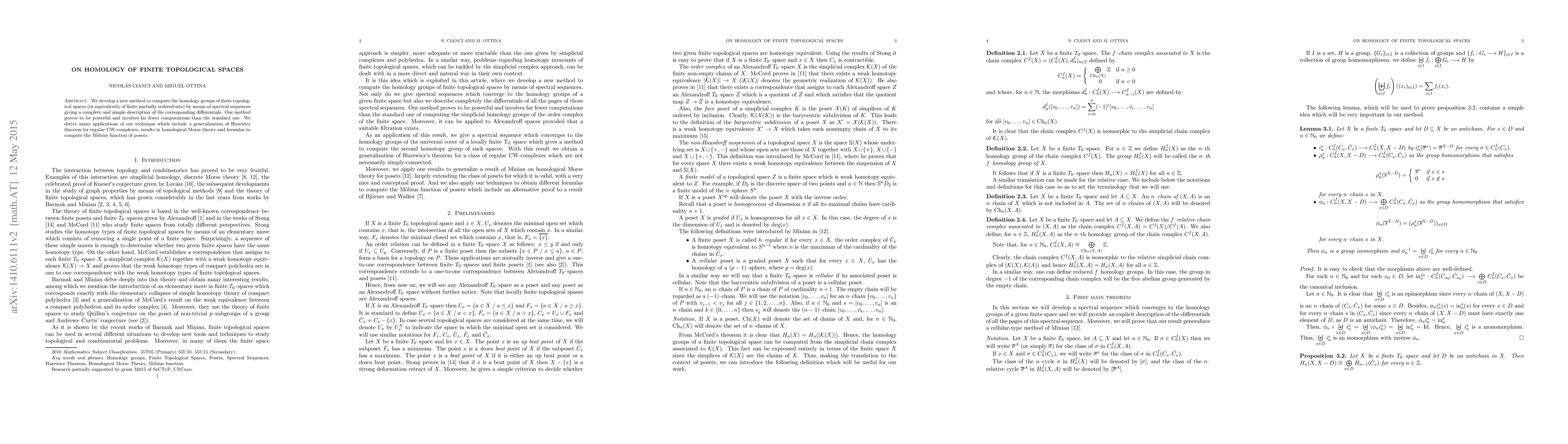 We develop a new method to compute the homology groups of finite topological spaces (or equivalently of finite partially ordered sets) by means of spectral sequences giving a complete and simple description of the corresponding differentials. Our method proves to be powerful and involves far fewer computations than the standard one. We derive many applications of our technique which include a generalization of Hurewicz theorem for regular CW-complexes, results in homological Morse theory and formulas to compute the M\"obius function of posets.