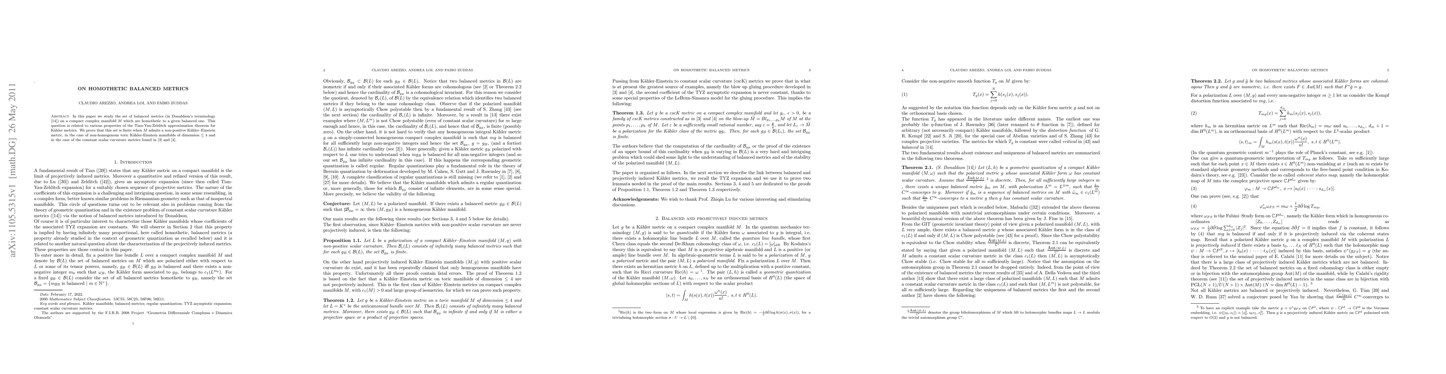 This paper investigates balanced metrics on compact complex manifolds that are homothetic to a given balanced metric, proving that such metrics are finite when the manifold supports a non-positive Kahler-Einstein metric, particularly for non-homogeneous toric Kähler-Einstein manifolds of dimension ≤ 4 and Arezzo-Pacard constant scalar curvature metrics.