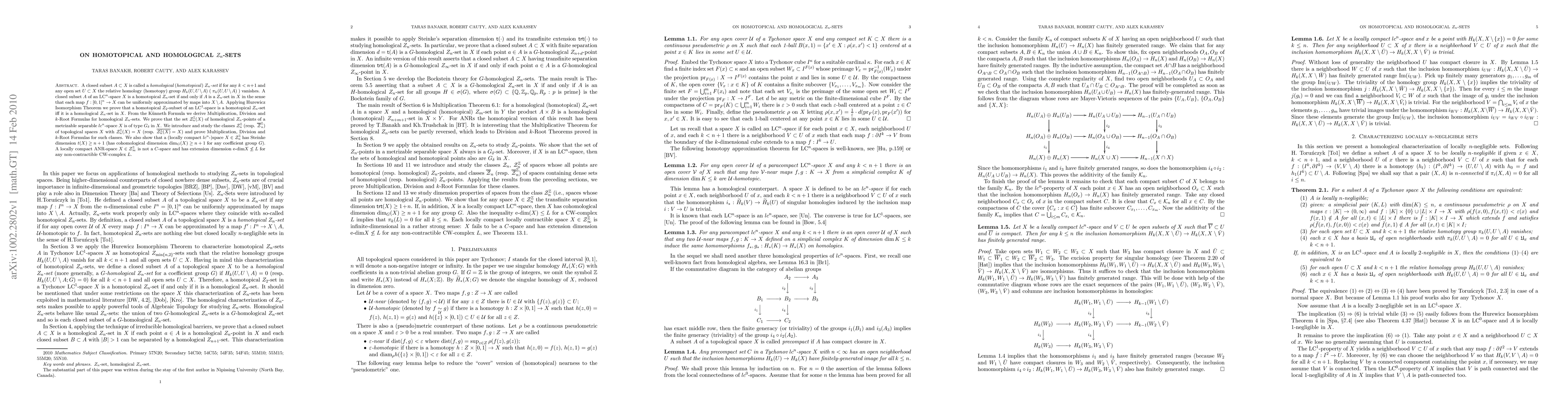 We survey some properties of homotopical and homological $Z_n$-sets in topological spaces.