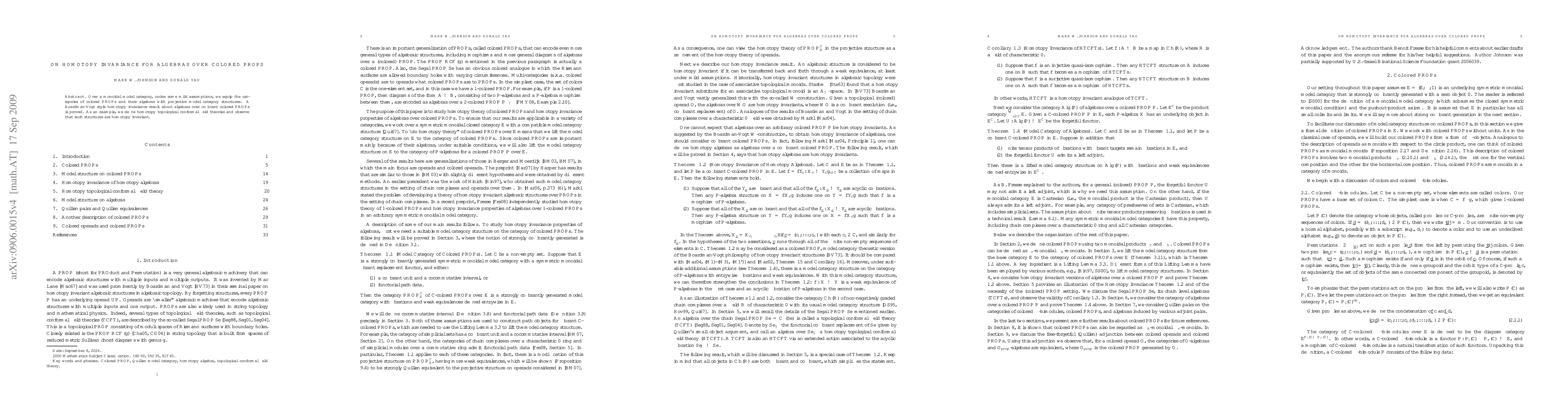The paper establishes homotopy invariance for algebras over cofibrant colored PROPs in a monoidal model category, proving a homotopy invariance result akin to Boardman-Vogt. It also demonstrates this invariance in the context of homotopy topological conformal field theories.
