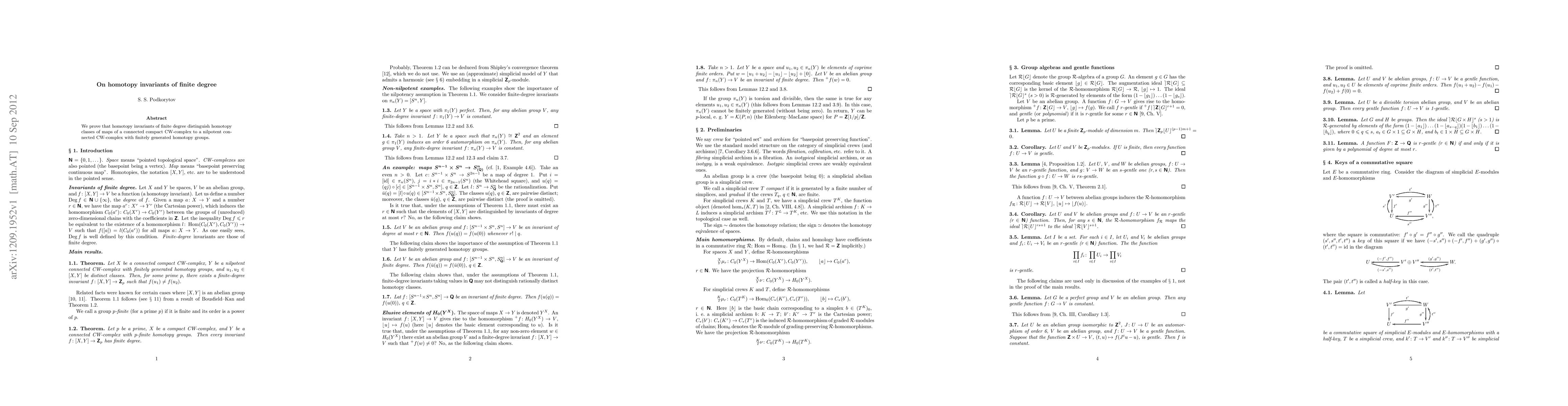 We prove that homotopy invariants of finite degree distinguish homotopy classes of maps of a connected compact CW-complex to a nilpotent connected CW-complex with finitely generated homotopy groups.