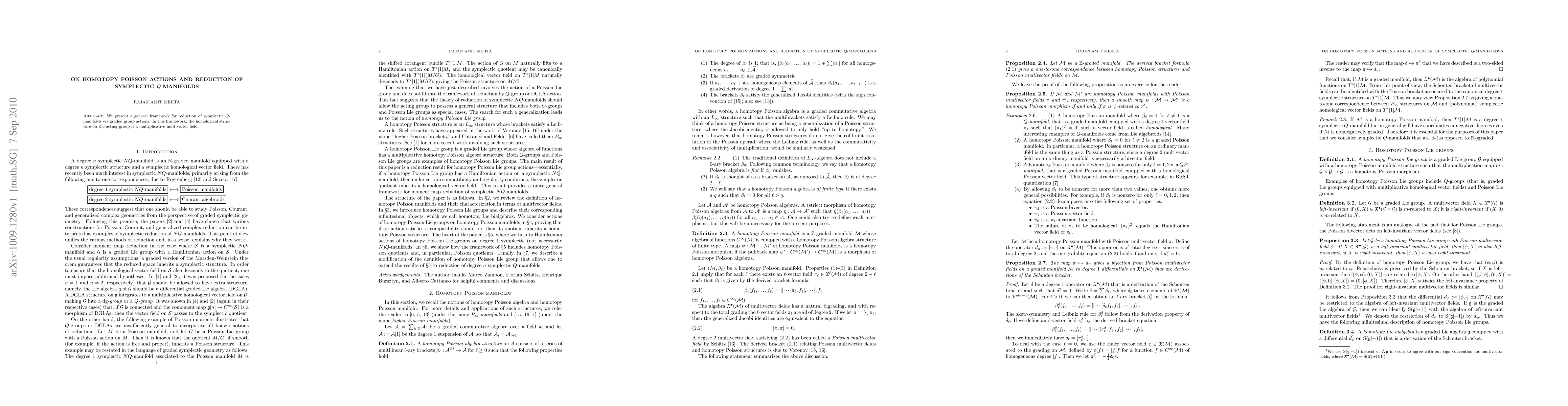 We present a general framework for reduction of symplectic Q-manifolds via graded group actions. In this framework, the homological structure on the acting group is a multiplicative multivector field.