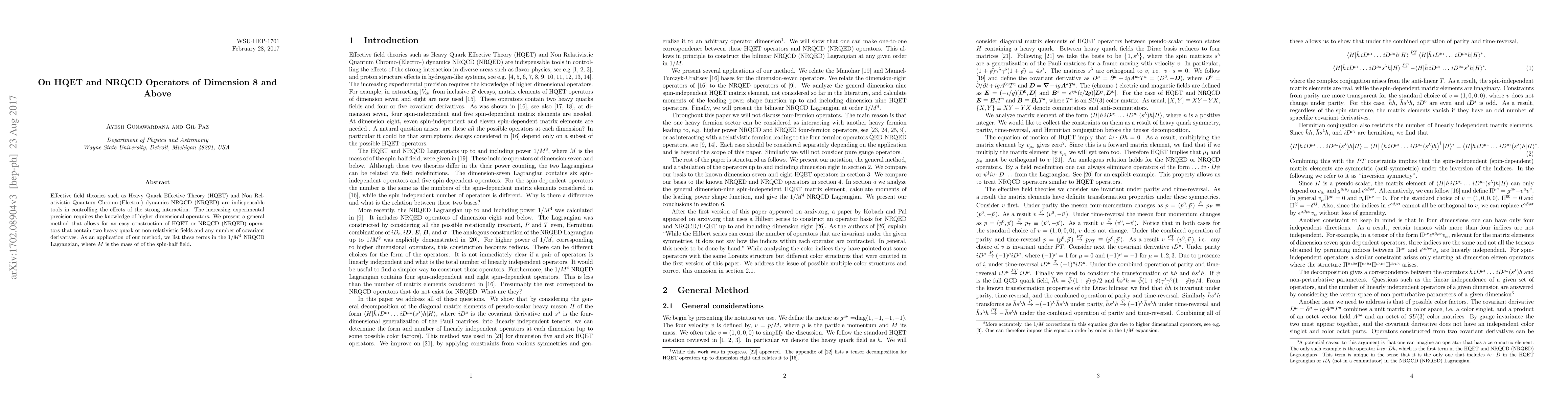 Effective field theories such as Heavy Quark Effective Theory (HQET) and Non Relativistic Quantum Chromo-(Electro-) dynamics NRQCD (NRQED) are indispensable tools in controlling the effects of the strong interaction. The increasing experimental precision requires the knowledge of higher dimensional operators. We present a general method that allows for an easy construction of HQET or NRQCD (NRQED) operators that contain two heavy quark or non-relativistic fields and any number of covariant derivatives. As an application of our method, we list these terms in the $1/M^4$ NRQCD Lagrangian, where $M$ is the mass of of the spin-half field.