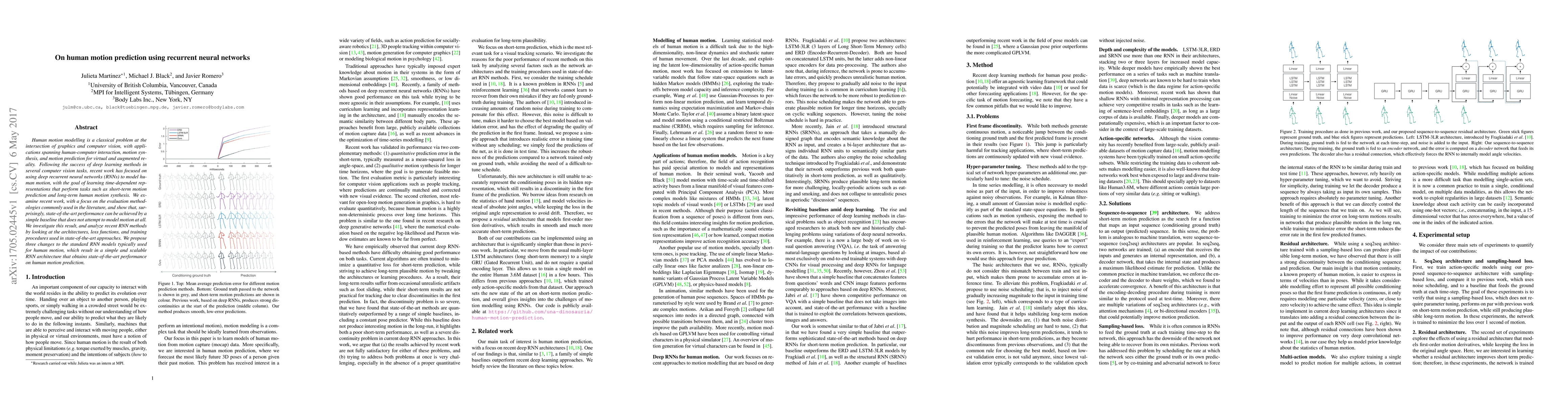 This paper reviews recent advancements in using recurrent neural networks (RNNs) for human motion prediction, highlighting that surprisingly simple baselines can achieve state-of-the-art results. The authors propose modifications to standard RNN architectures to develop a scalable model that outperforms existing methods.