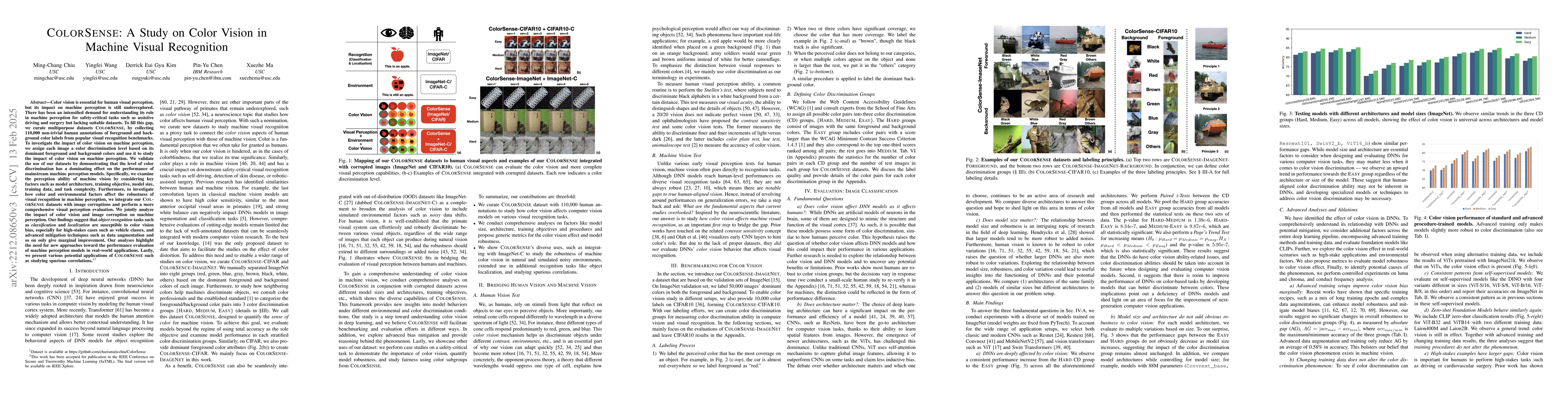 It is well established in neuroscience that color vision plays an essential part in the human visual perception system. Meanwhile, many novel designs for computer vision inspired by human vision have achieved success in a wide range of tasks and applications. Nonetheless, how color differences affect machine vision has not been well explored. Our work tries to bridge this gap between the human color vision aspect of visual recognition and that of the machine. To achieve this, we curate two datasets: CIFAR10-F and CIFAR100-F, which are based on the foreground colors of the popular CIFAR datasets. Together with CIFAR10-B and CIFAR100-B, the existing counterpart datasets with information on the background colors of CIFAR test sets, we assign each image based on its color contrast level per its foreground and background color labels and use this as a proxy to study how color contrast affects machine vision. We first conduct a proof-of-concept study, showing the effect of color difference and validate our datasets. Furthermore, on a broader level, an important characteristic of human vision is its robustness against ambient changes; therefore, drawing inspirations from ophthalmology and the robustness literature, we analogize contrast sensitivity from the human visual aspect to machine vision and complement the current robustness study using corrupted images with our CIFAR-CoCo datasets. In summary, motivated by neuroscience and equipped with the datasets we curate, we devise a new framework in two dimensions to perform extensive analyses on the effect of color contrast and corrupted images: (1) model architecture, (2) model size, to measure the perception ability of machine vision beyond total accuracy. We also explore how task complexity and data augmentation play a role in this setup. Our results call attention to new evaluation approaches for human-like machine perception.