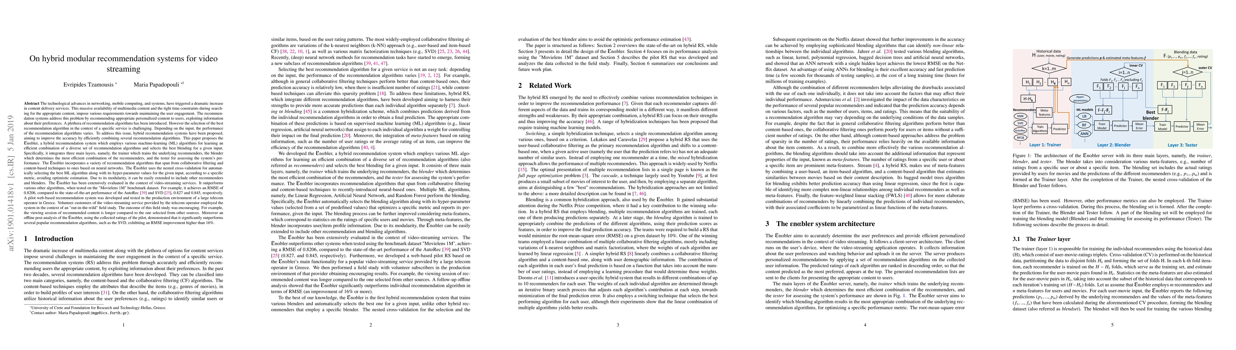 A hybrid modular recommendation system called Enabler improves video streaming user engagement by combining various machine learning algorithms for personalized content recommendations. It outperforms state-of-the-art algorithms in benchmark datasets and demonstrated significant performance gains in real-world testing.