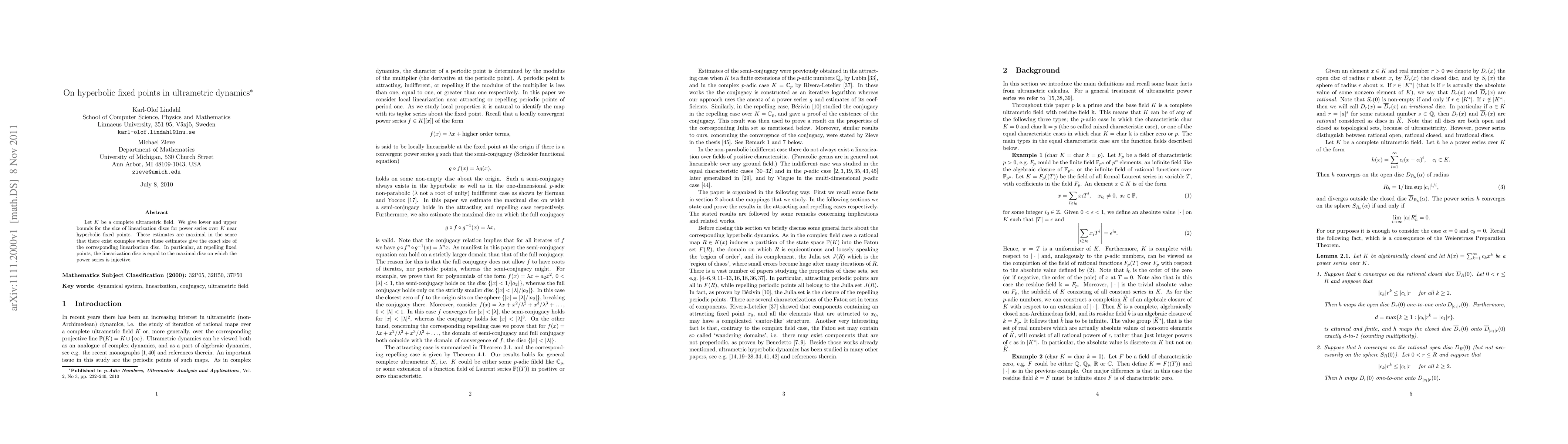 Let K be a complete ultrametric field. We give lower and upper bounds for the size of linearization discs for power series over K near hyperbolic fixed points. These estimates are maximal in the sense that there exist examples where these estimates give the exact size of the corresponding linearization disc. In particular, at repelling fixed points, the linearization disc is equal to the maximal disc on which the power series is injective.