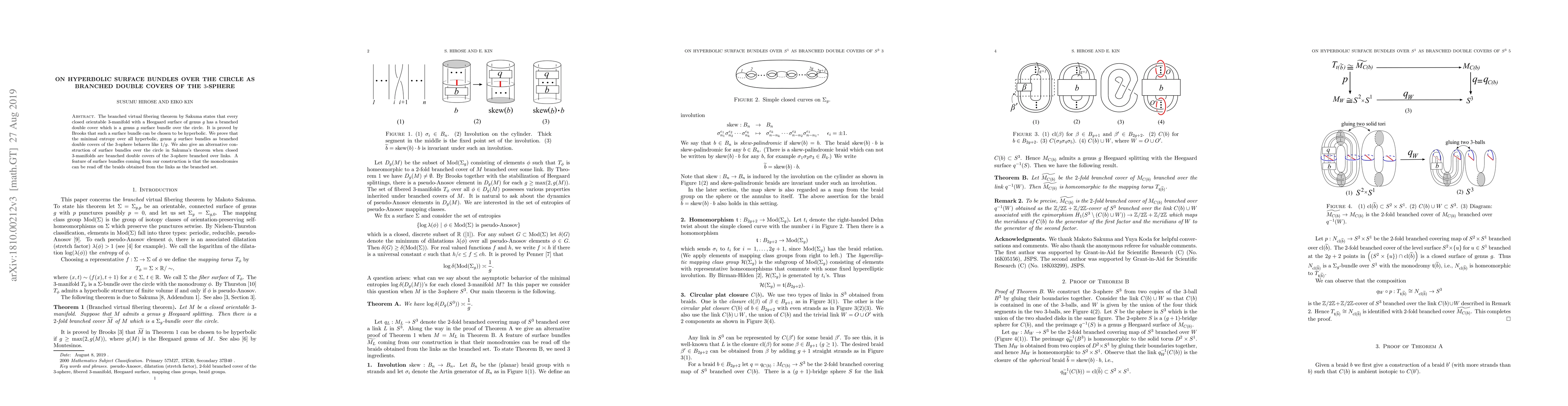 The branched virtual fibering theorem by Sakuma states that every closed orientable $3$-manifold with a Heegaard surface of genus $g$ has a branched double cover which is a genus $g$ surface bundle over the circle. It is proved by Brooks that such a surface bundle can be chosen to be hyperbolic. We prove that the minimal entropy over all hyperbolic, genus $g$ surface bundles as branched double covers of the $3$-sphere behaves like 1/$g$. We also give an alternative construction of surface bundles over the circle in Sakuma's theorem when closed $3$-manifolds are branched double covers of the $3$-sphere branched over links. A feature of surface bundles coming from our construction is that the monodromies can be read off the braids obtained from the links as the branched set.