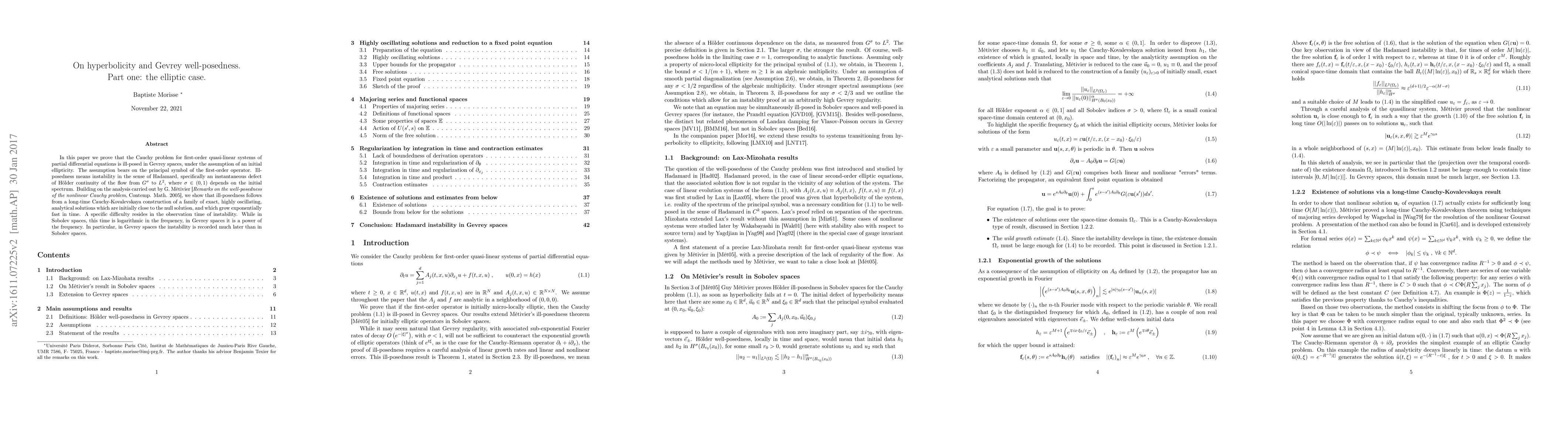 This paper proves that first-order quasi-linear systems of PDEs with initial ellipticity are ill-posed in Gevrey spaces, meaning they exhibit instability from the start.