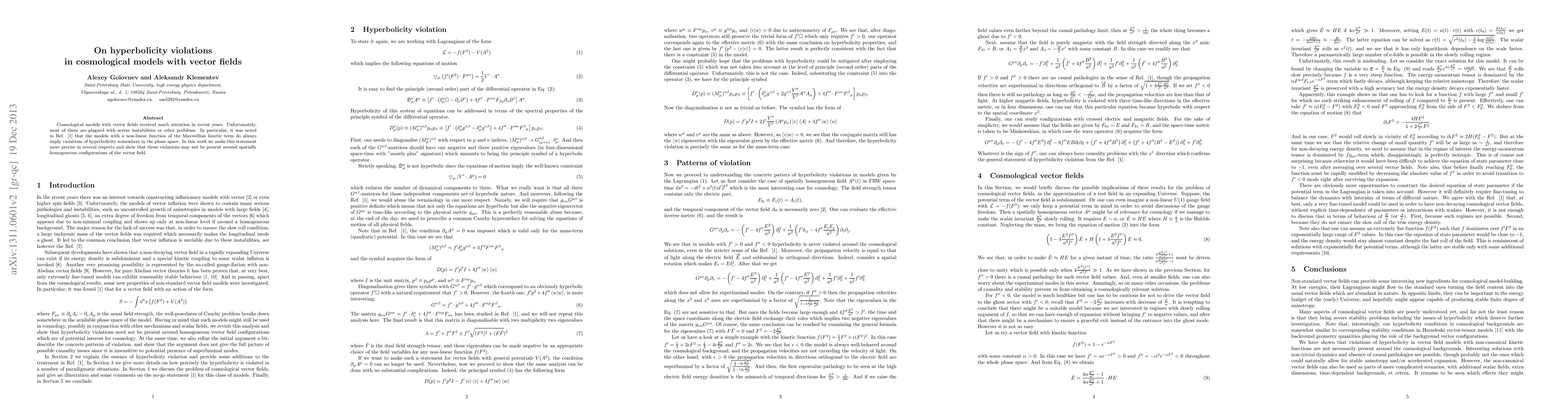 This paper investigates the hyperbolicity violations in cosmological models incorporating vector fields, particularly focusing on non-linear Maxwellian kinetic terms. It refines previous findings and demonstrates that these violations may not occur near spatially homogeneous vector field configurations.
