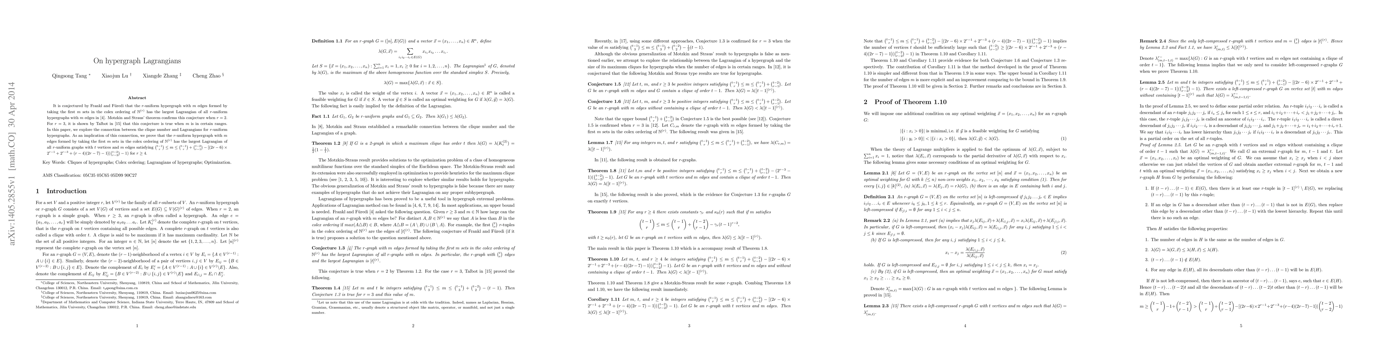 This paper investigates the conjecture by Frankl and F\"uredi regarding the largest Lagrangian in $r$-uniform hypergraphs, proving it for $r \geq 4$ under certain conditions on the number of vertices and edges. It establishes a connection between the clique number and Lagrangians, thereby confirming the conjecture for specific ranges.