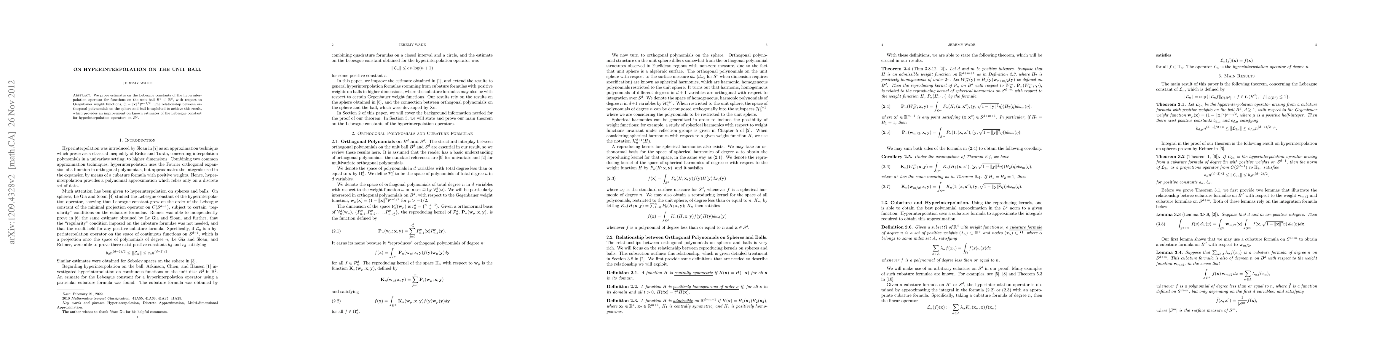 This paper establishes improved estimates on the Lebesgue constants for hyperinterpolation operators on the unit ball, leveraging the relationship between orthogonal polynomials on the sphere and ball, particularly for functions weighted by $(1-|\xb|^2)^{\mu-1/2}$. The results enhance previous estimates for hyperinterpolation on $B^2$.