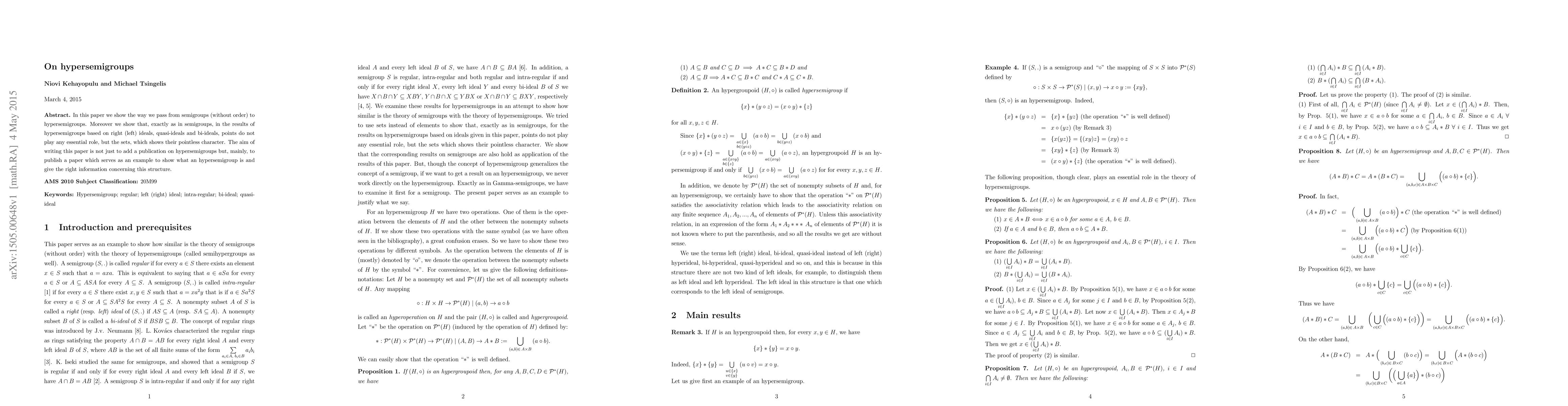 In this paper we show the way we pass from semigroups (without order) to hypersemigroups. Moreover we show that, exactly as in semigroups, in the results of hypersemigroups based on right (left) ideals, quasi-ideals and bi-ideals, points do not play any essential role, but the sets, which shows their pointless character. The aim of writing this paper is not just to add a publication on hypersemigroups but, mainly, to publish a paper which serves as an example to show what an hypersemigroup is and give the right information concerning this structure.