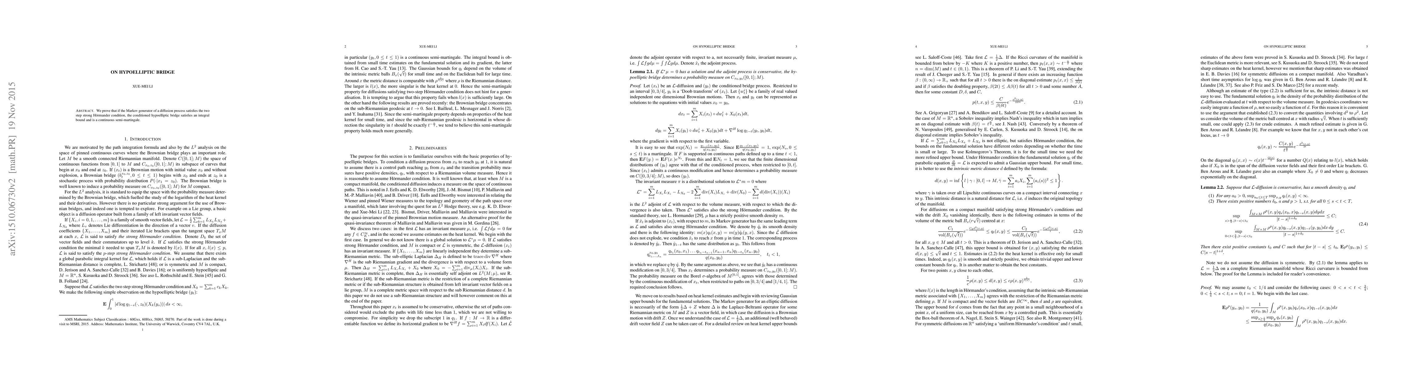 This research proves that under the two-step strong Hu00c6ormander condition for a diffusion process' Markov generator, the conditioned hypoelliptic bridge adheres to an integral bound and is identified as a continuous semi-martingale.