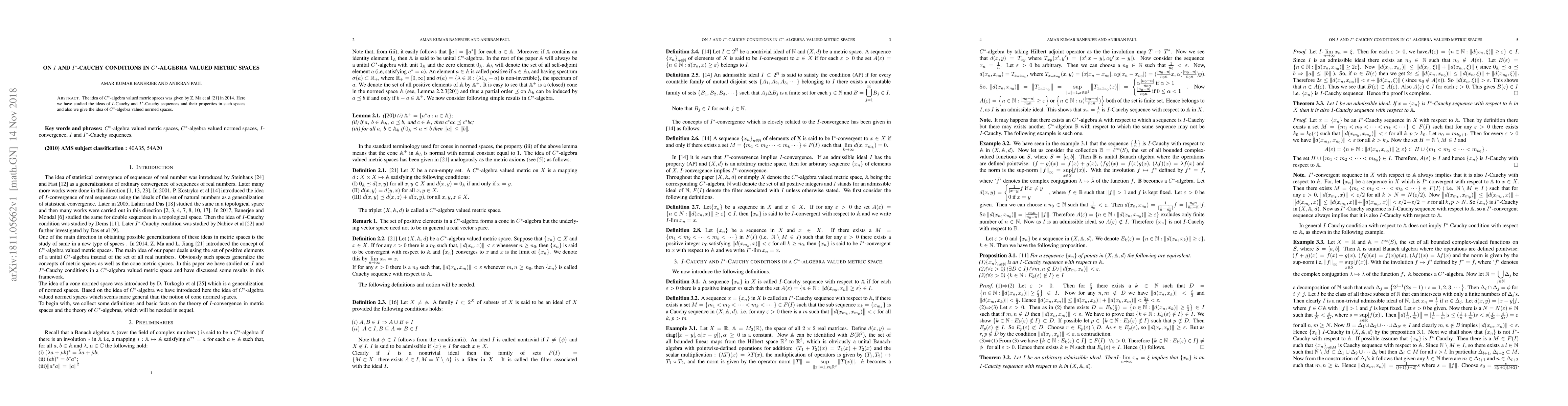 Summary: This paper explores $I$-Cauchy and $I^*$-Cauchy conditions in $C^*$-algebra valued metric spaces, introduced by Z. Ma et al. in 2014, and introduces $C^*$-algebra valued normed spaces, examining their properties.
