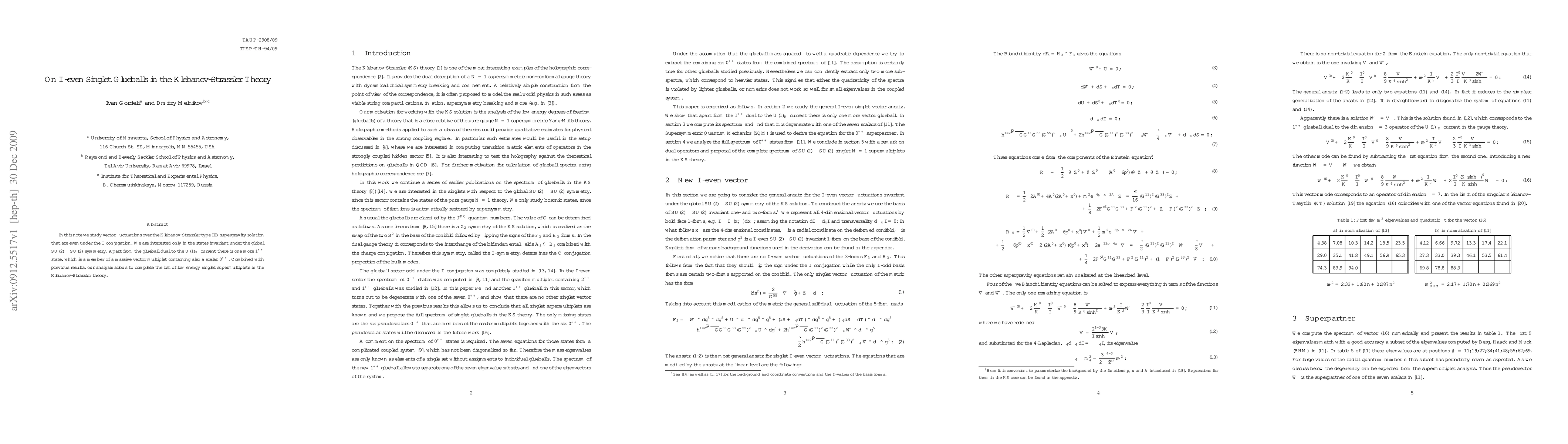 This paper investigates vector fluctuations in the Klebanov-Strassler theory that are even under I-conjugation, focusing on states invariant under SU(2)xSU(2) symmetry. It identifies an additional 1++ glueball state, completing the list of low-energy singlet supermultiplets in the theory.