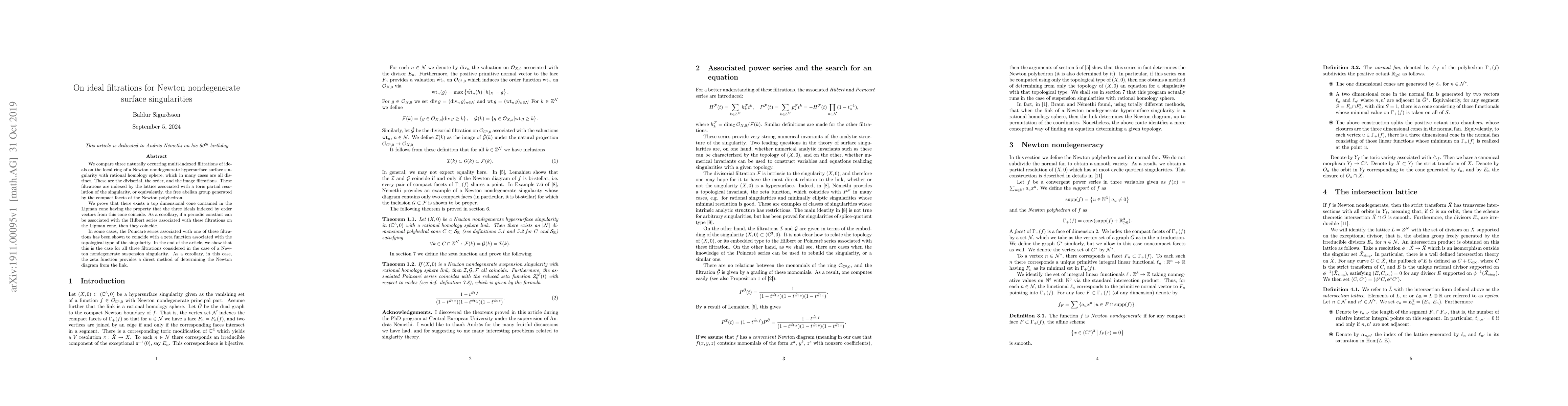This paper compares three filtrations of ideals on the local ring of Newton nondegenerate surface singularities, showing they coincide under certain conditions. It concludes that the zeta function can determine the Newton diagram from the link in the case of Newton nondegenerate suspension singularities.